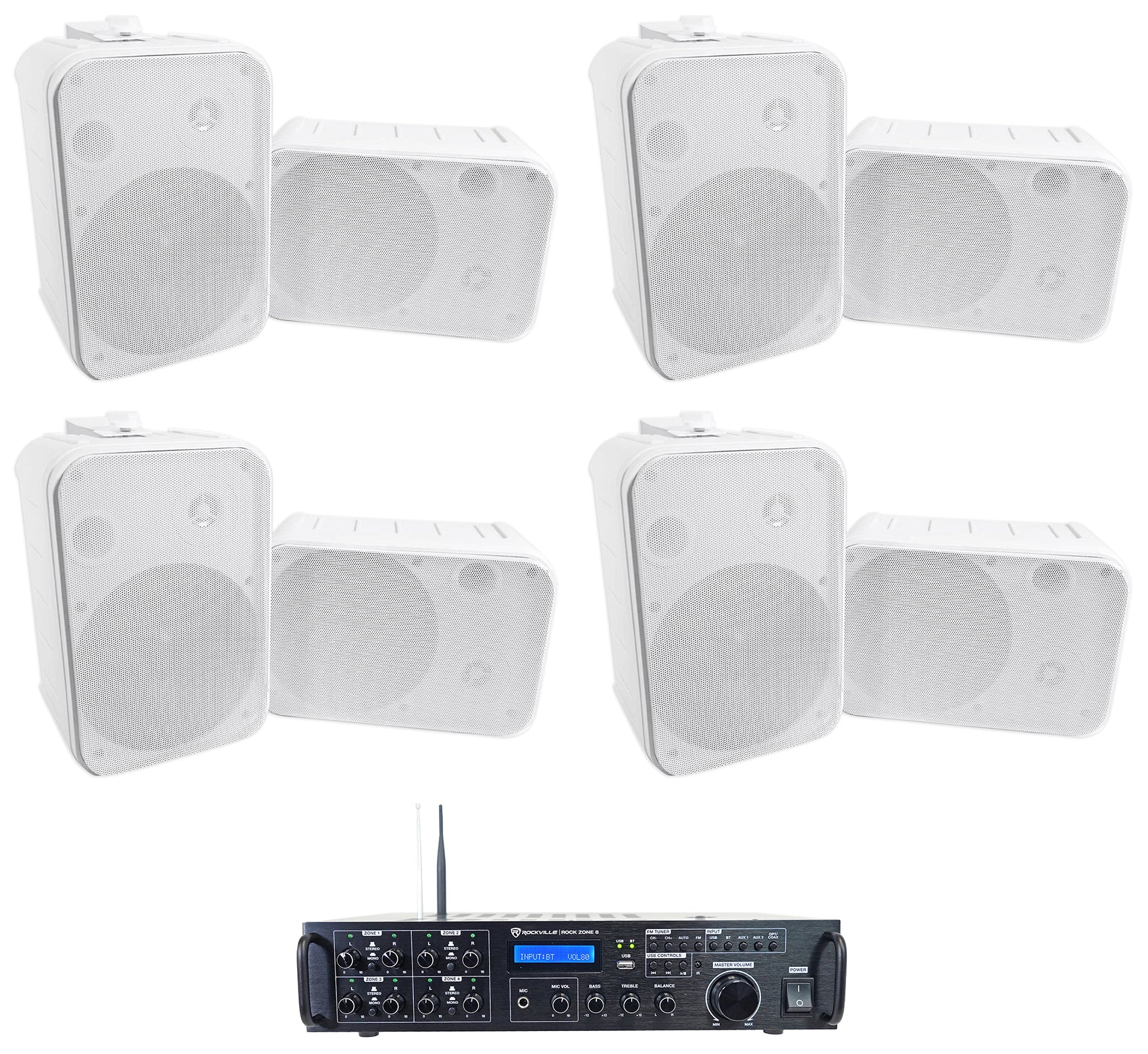 Rockville Rock Zone 8 Ch. Multi Room Home Receiver+(8) White 6.5" Wall Speakers