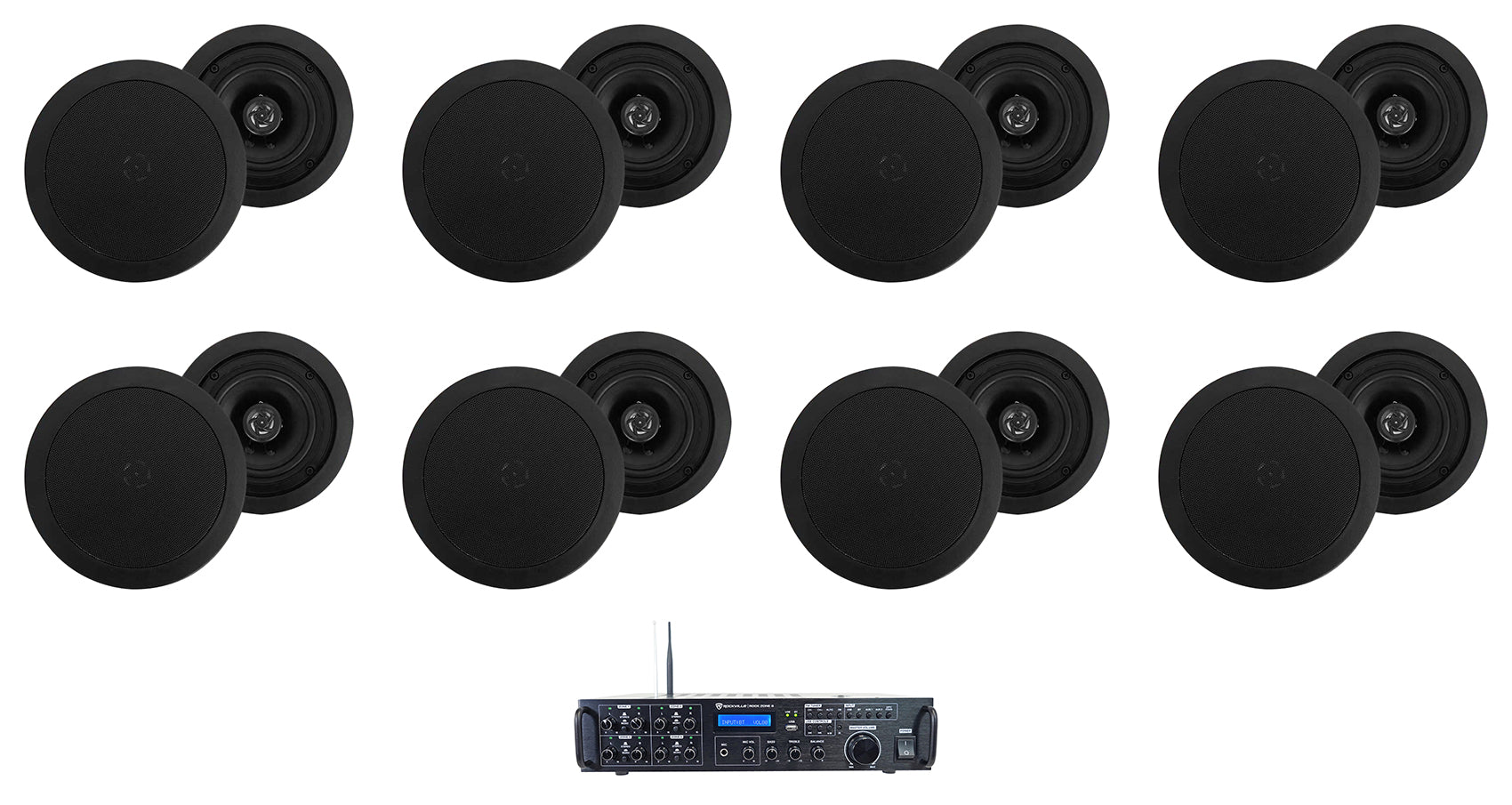 Rockville Rock Zone 8 Ch. Multi Room Receiver+(16) 5.25" Black Ceiling Speakers