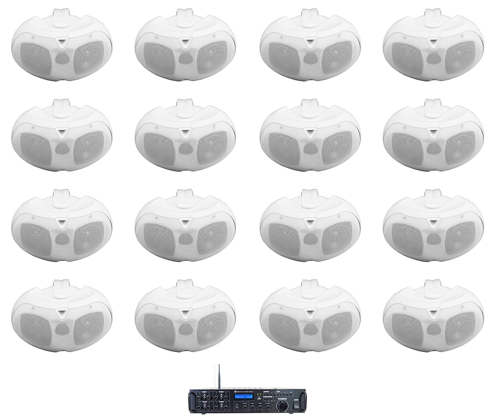 Rockville Rock Zone 8 Channel Multi Room Home Receiver+(16) White Patio Speakers