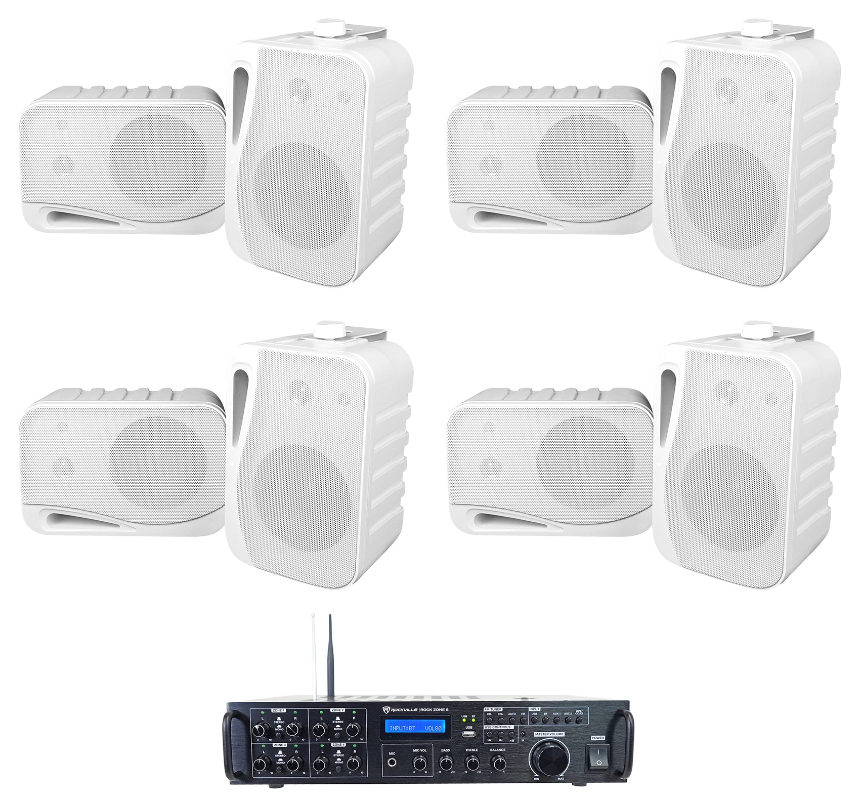 Rockville Rock Zone 8 Channel Multi Room Home Receiver+8) White 4" Wall Speakers
