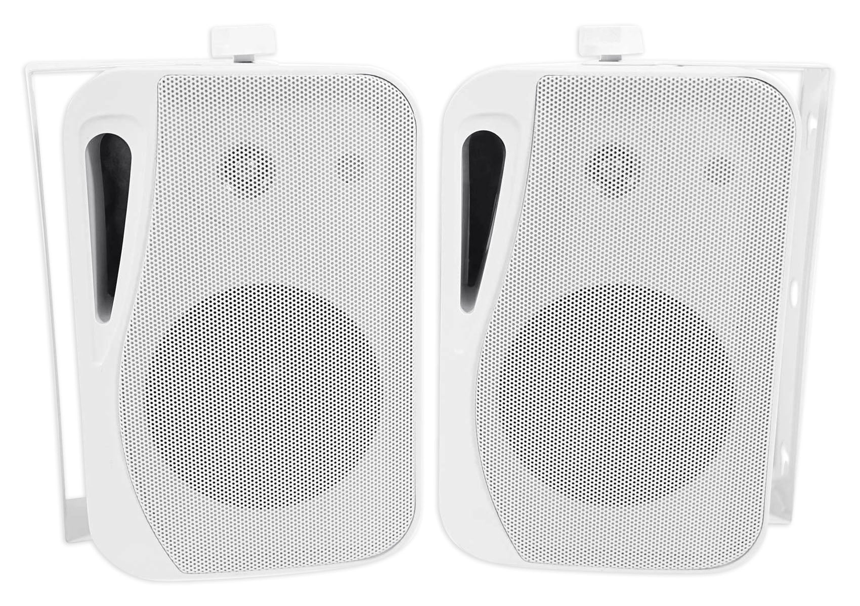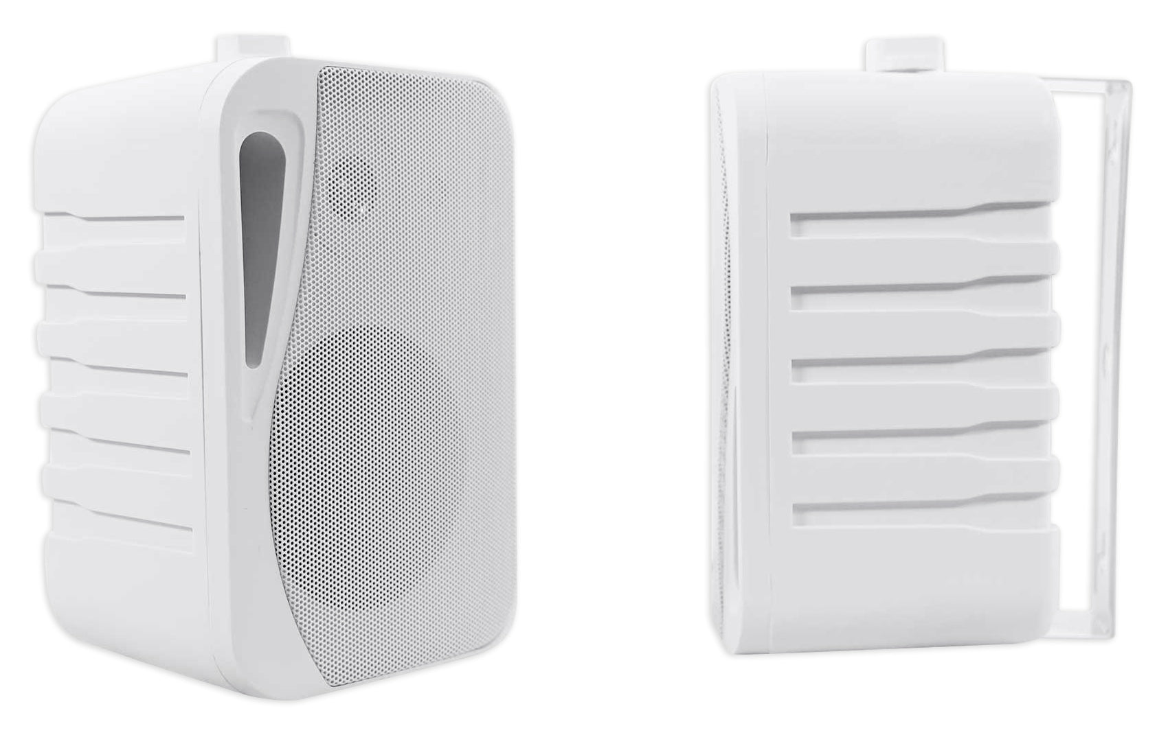 These speakers feature heavy duty ABS construction which can literally be thrown off your roof without getting damaged. These are also IPX44 rated for being weather and water resistant. They can withstand rain, mist, snow, wind, and anything the outdoors will throw at it. You can keep them outdoors in the rain and moisture and they will not get damaged. These speakers are perfect for patios, large backyards, and indoor applications. These are also perfect for use in commercial spaces like gyms, hotels, and more.