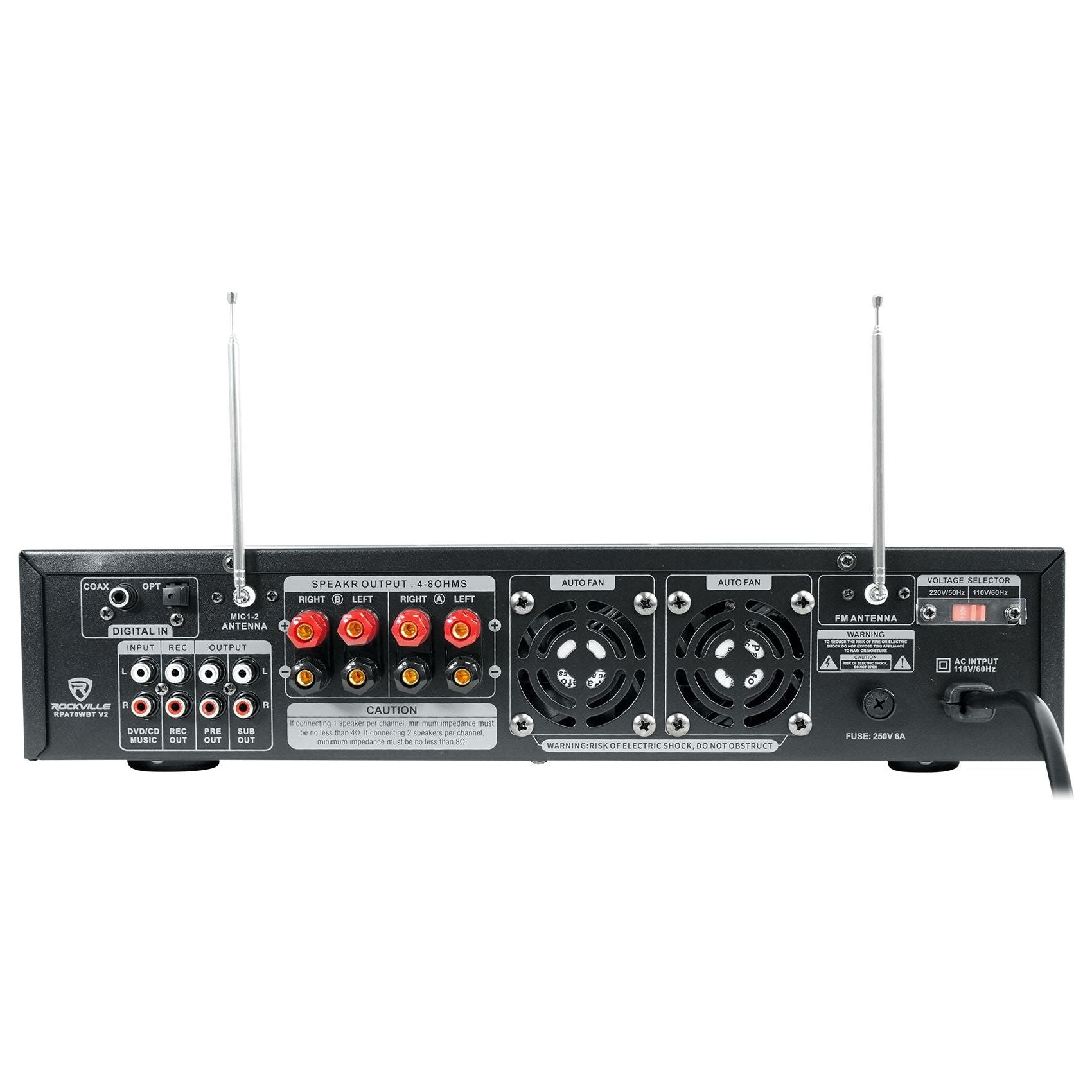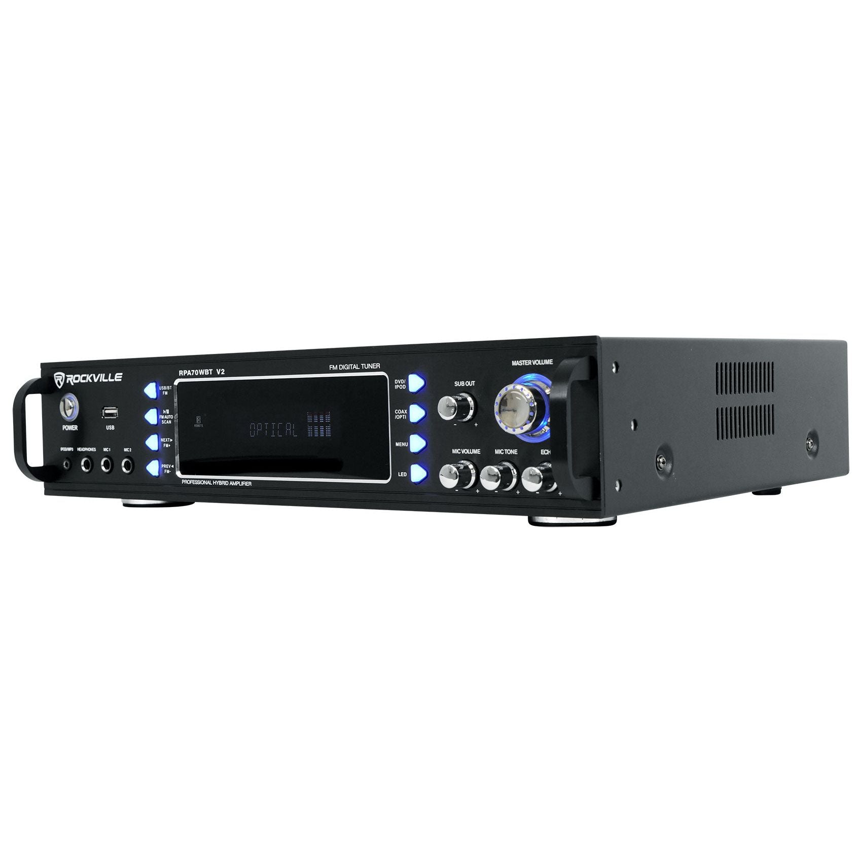 - Rockville RPA70WBT 19" 1000 Watt 2-Channel USB and Bluetooth Karaoke Receiver/Amplifier/Mixer with 2 Wireless Microphones