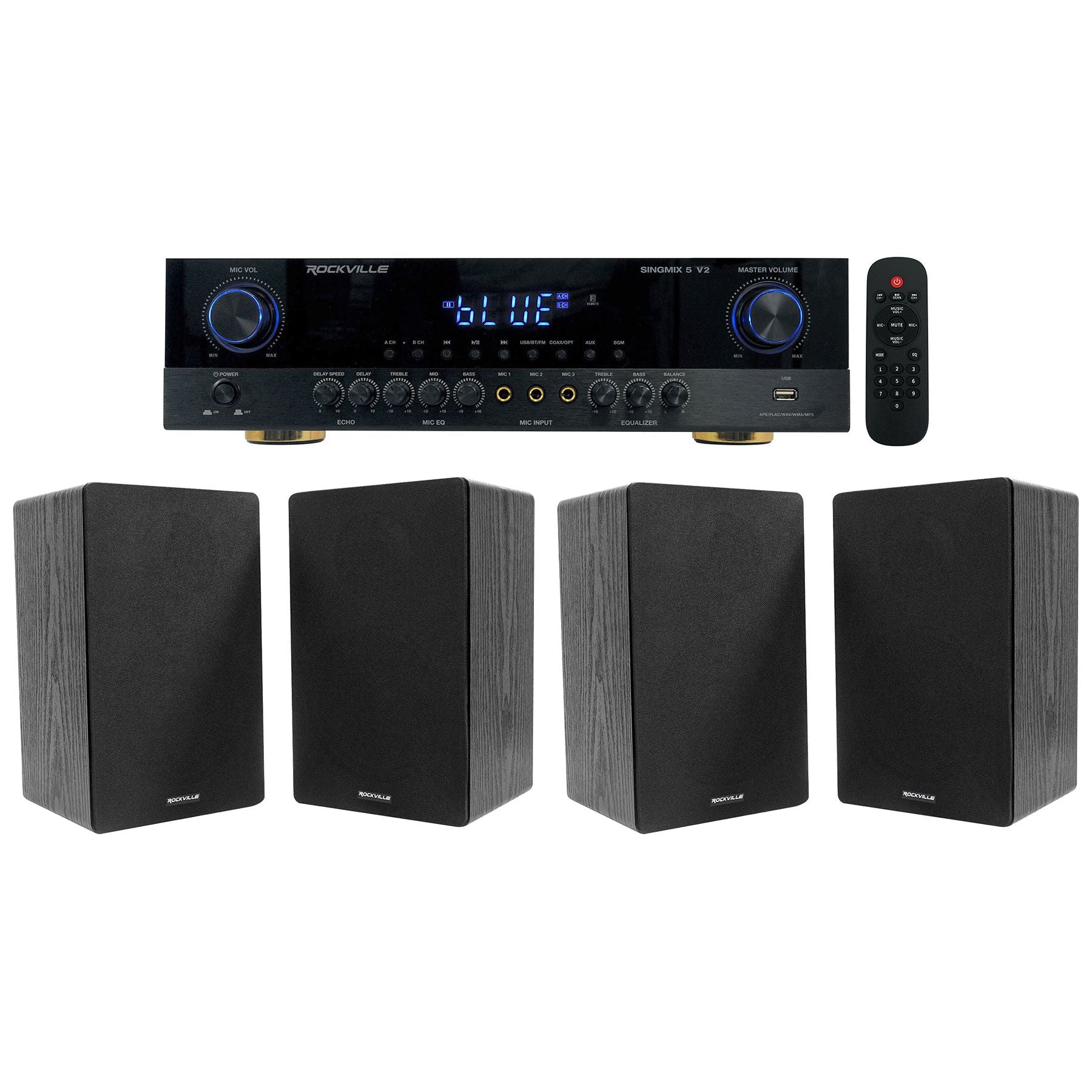 Rockville SINGMIX 5 Bluetooth Home Receiver Amp+(4) 6.5" Bookshelf Speakers