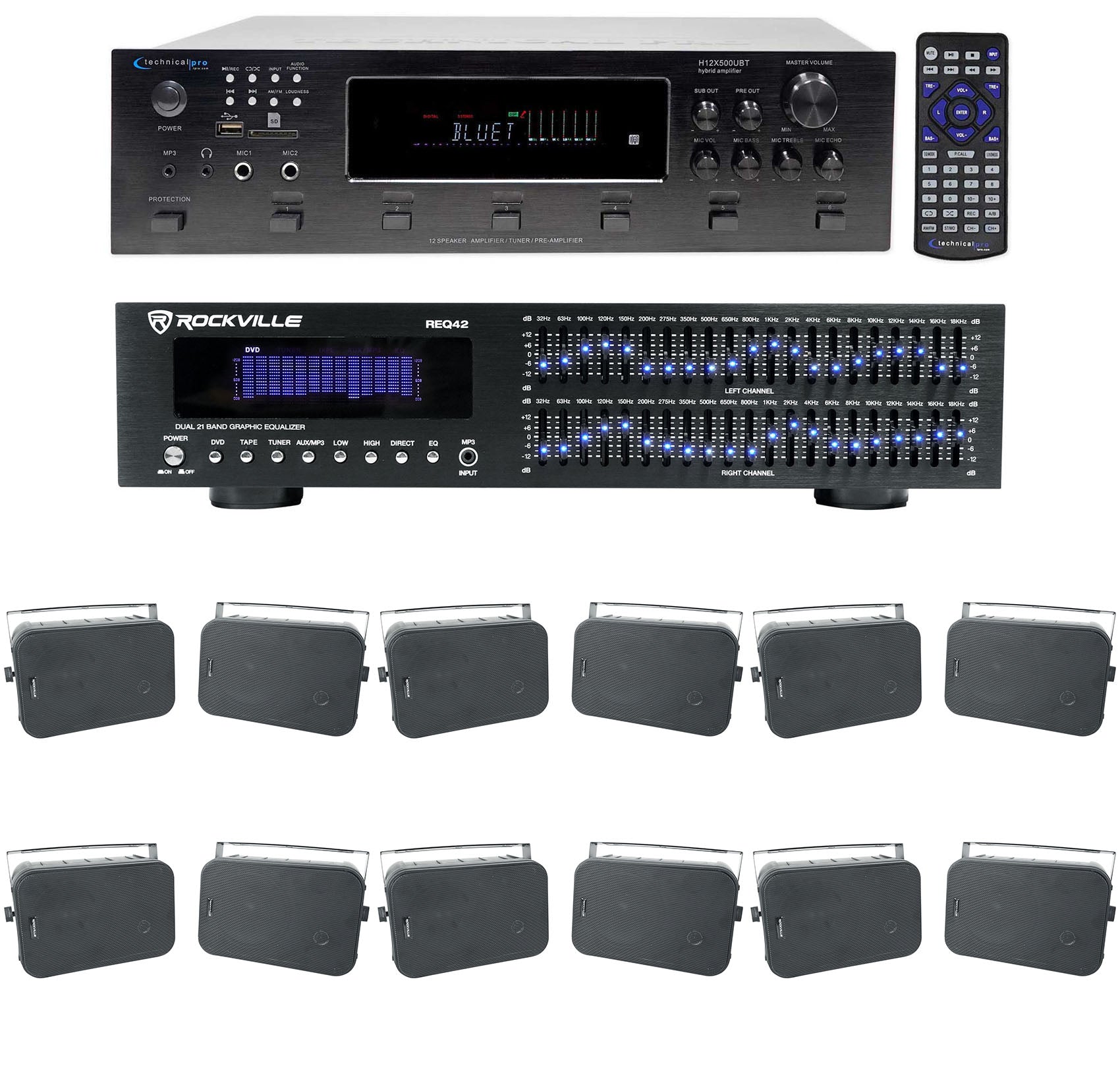 Technical Pro 6000w 6-Zone Home Theater Bluetooth Receiver+12) 6.5" Black Speakers +EQ