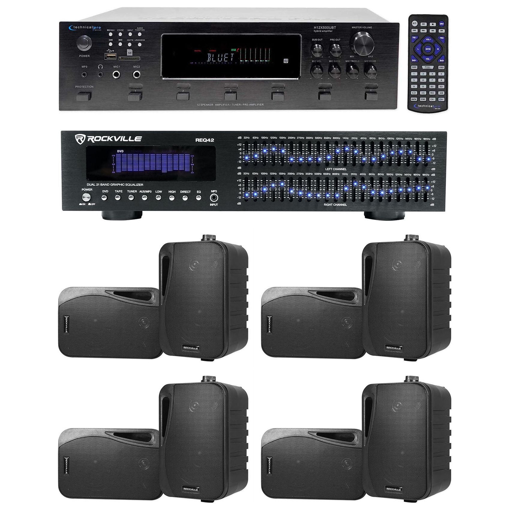 Technical Pro 6000w 6) Zone, Home Theater Bluetooth Receiver+(8) 4" Speakers+EQ