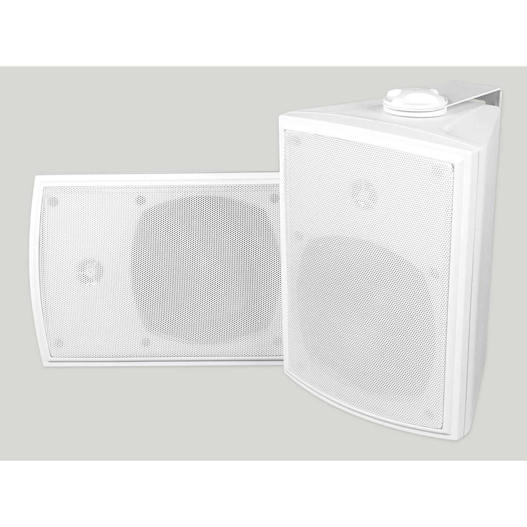 These speakers feature heavy duty ABS construction which can literally be thrown off your roof without getting damaged. These are also IPX44 rated for being weather and water resistant. They can withstand rain, mist, snow, wind, and anything the outdoors will throw at it. These speakers are perfect for patios, large backyards, and indoor applications. These are also perfect for use in commercial spaces like gyms, hotels, and more.
