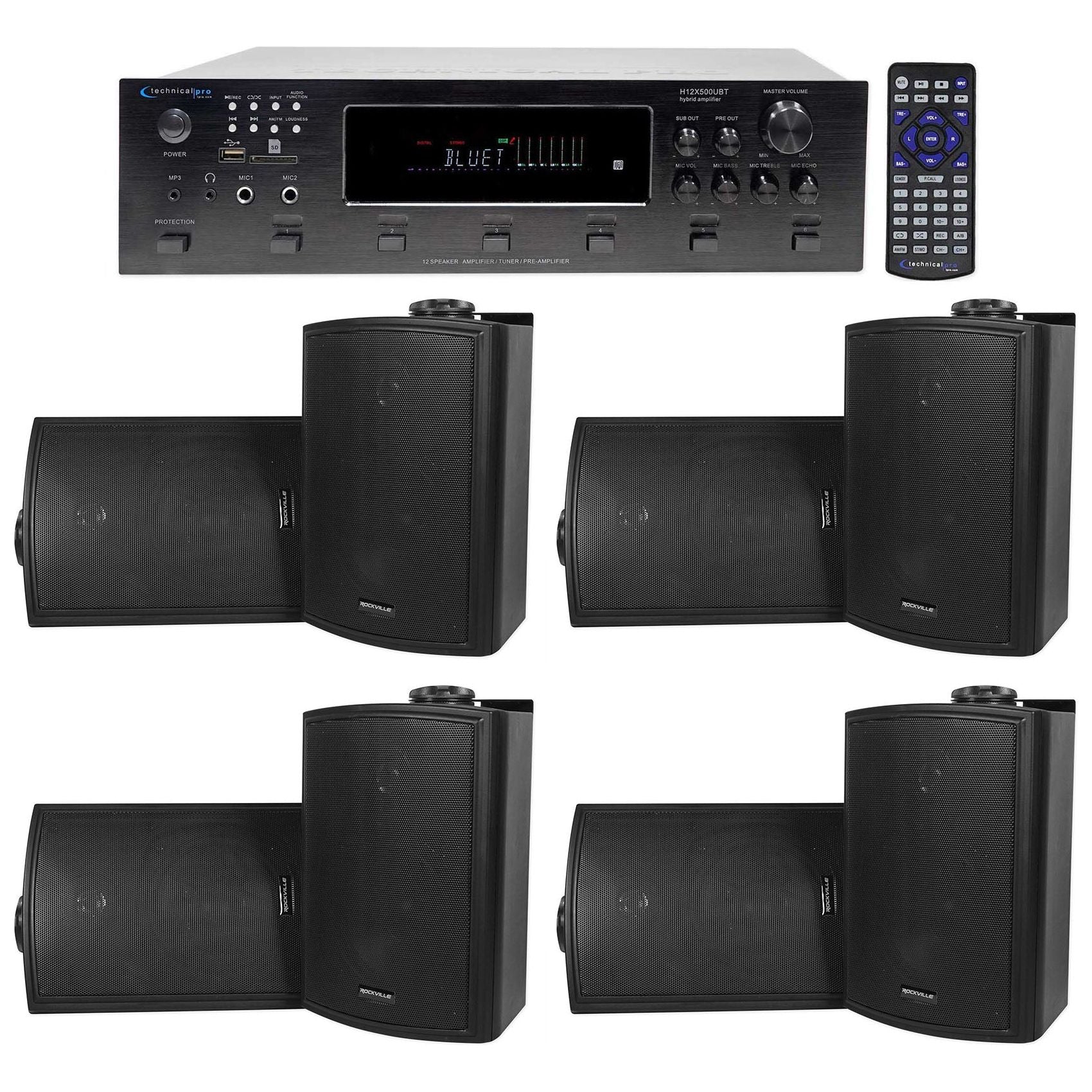 Technical Pro 6000w (6) Zone, Home Theater Bluetooth Receiver +(8) 5.25" Speakers