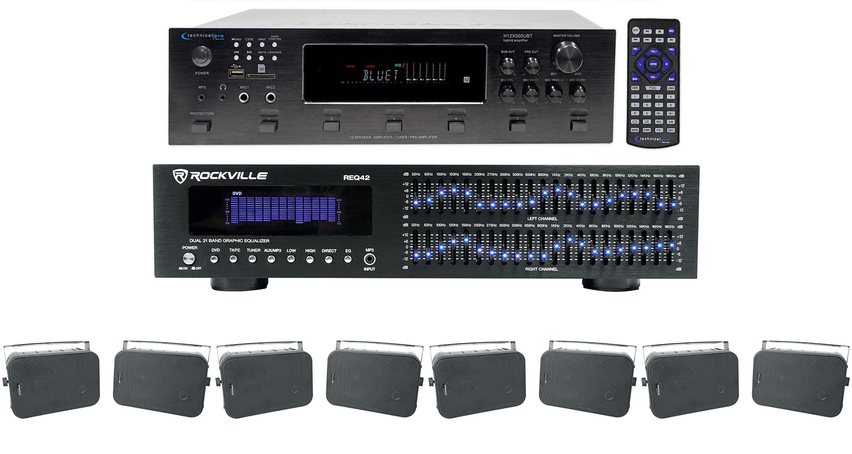 Technical Pro 6000w 6) Zone Home Theater Bluetooth Receiver+8) 6.5" Black Speakers +EQ