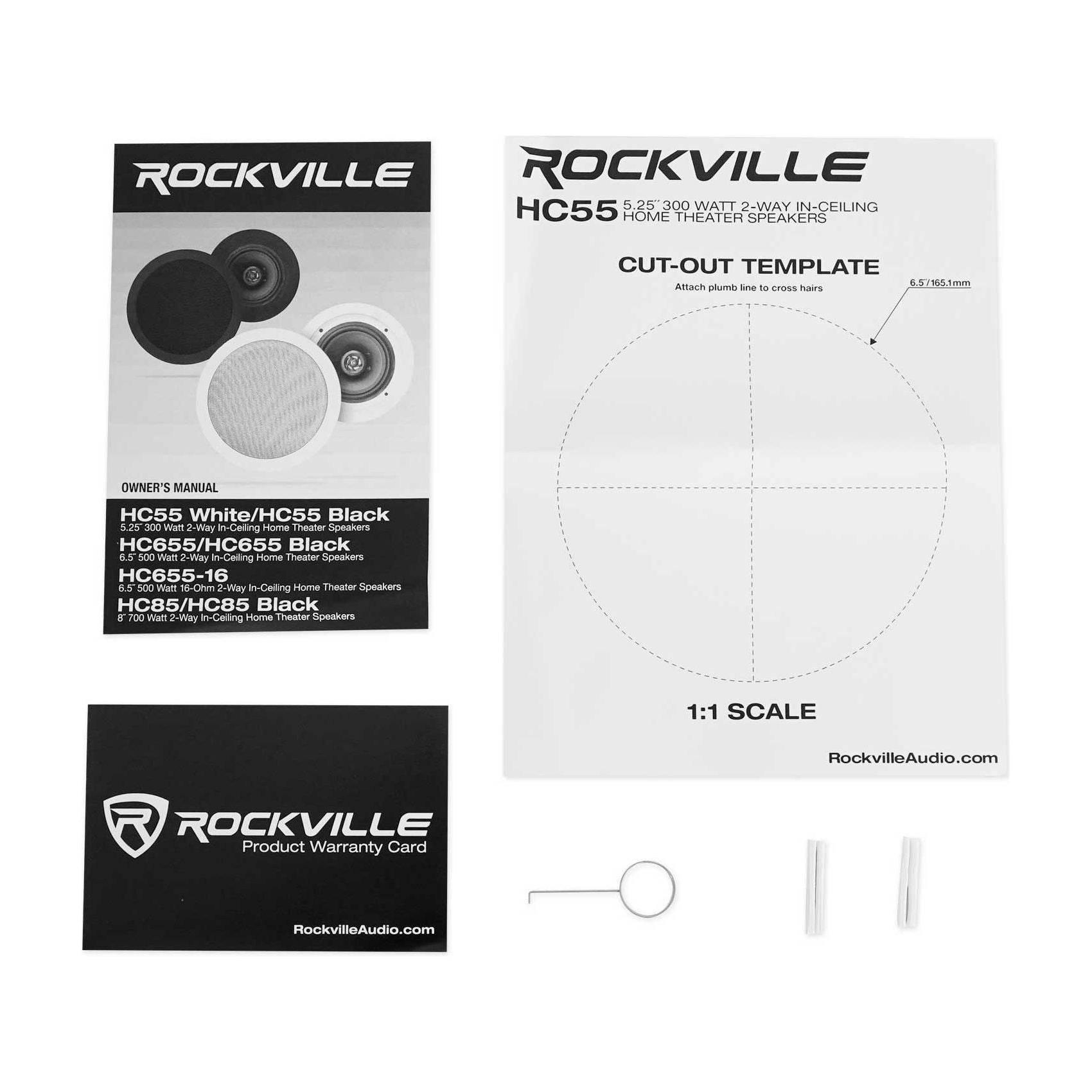 - Pair of Rockville HC55 5.25” White 300 Watt 2-Way In-Ceiling Home Theater Speakers