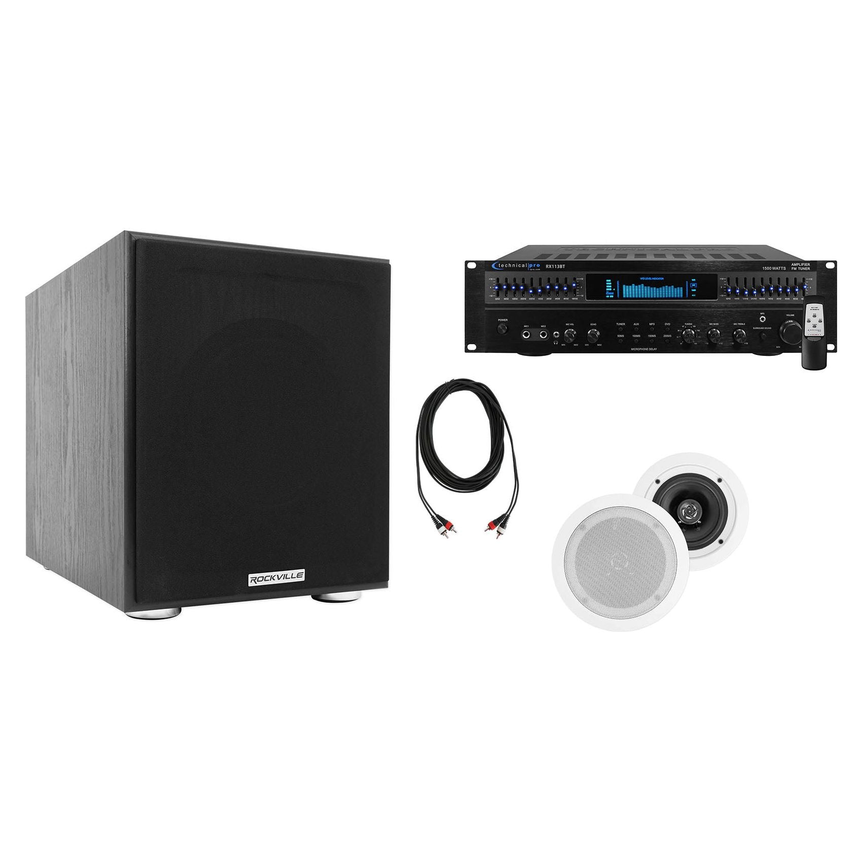 Technical Pro Home Theater Receiver+2) 5.25" White Ceiling Speakers+8" Subwoofer