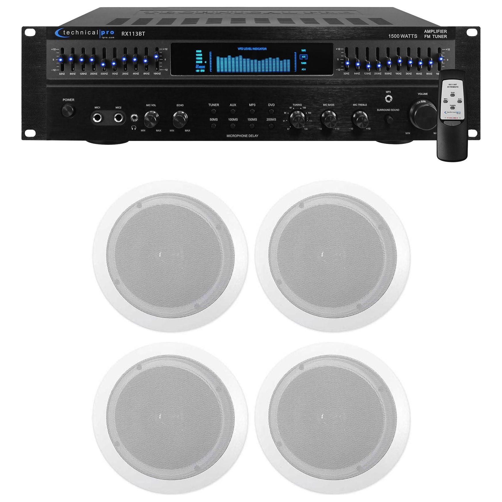 Technical Pro RX113 Home Theater Amplifier Receiver+(4) 6.5" Ceiling Speakers