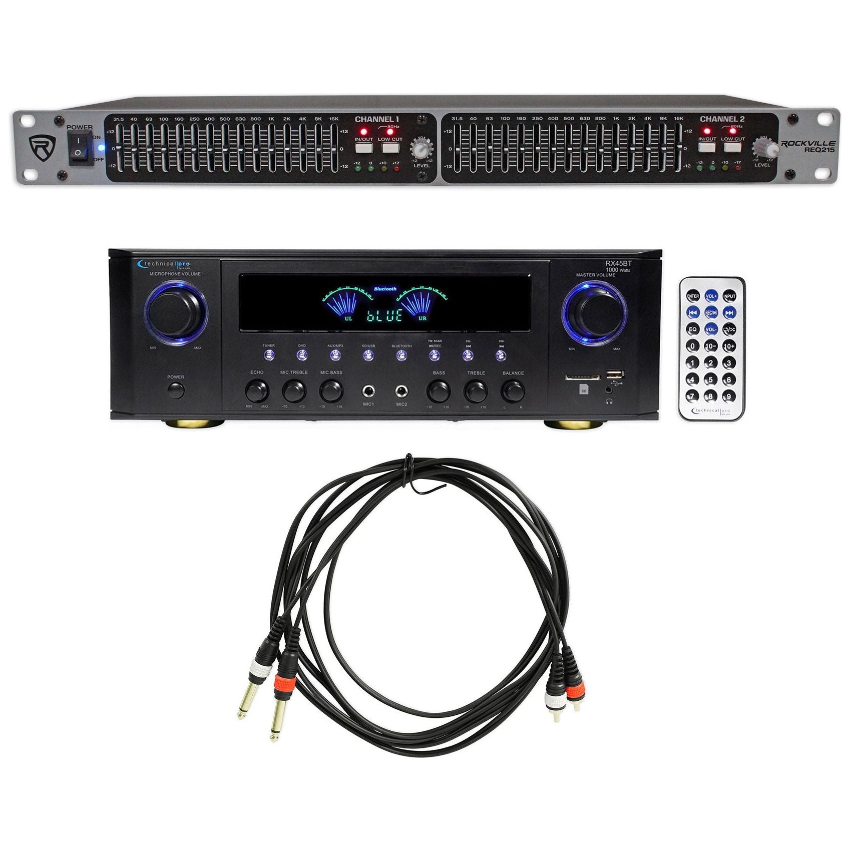 Technical Pro RX45BT Home Theater Receiver Bluetooth USB Bundle with Dual 15 Band Equalizer