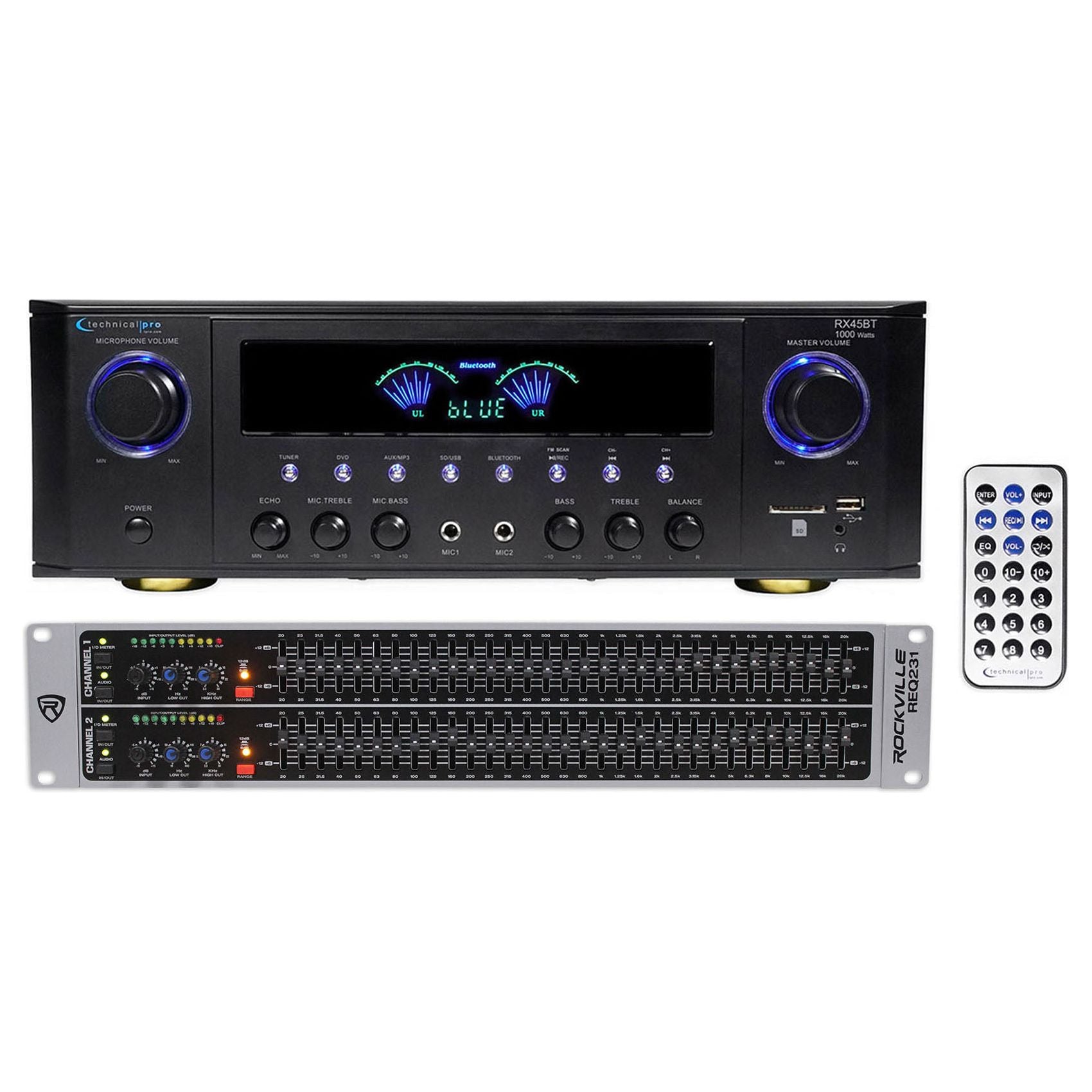 Technical Pro RX45BT Home Theater Receiver Bluetooth USB Bundle with Dual 31 Band Equalizer
