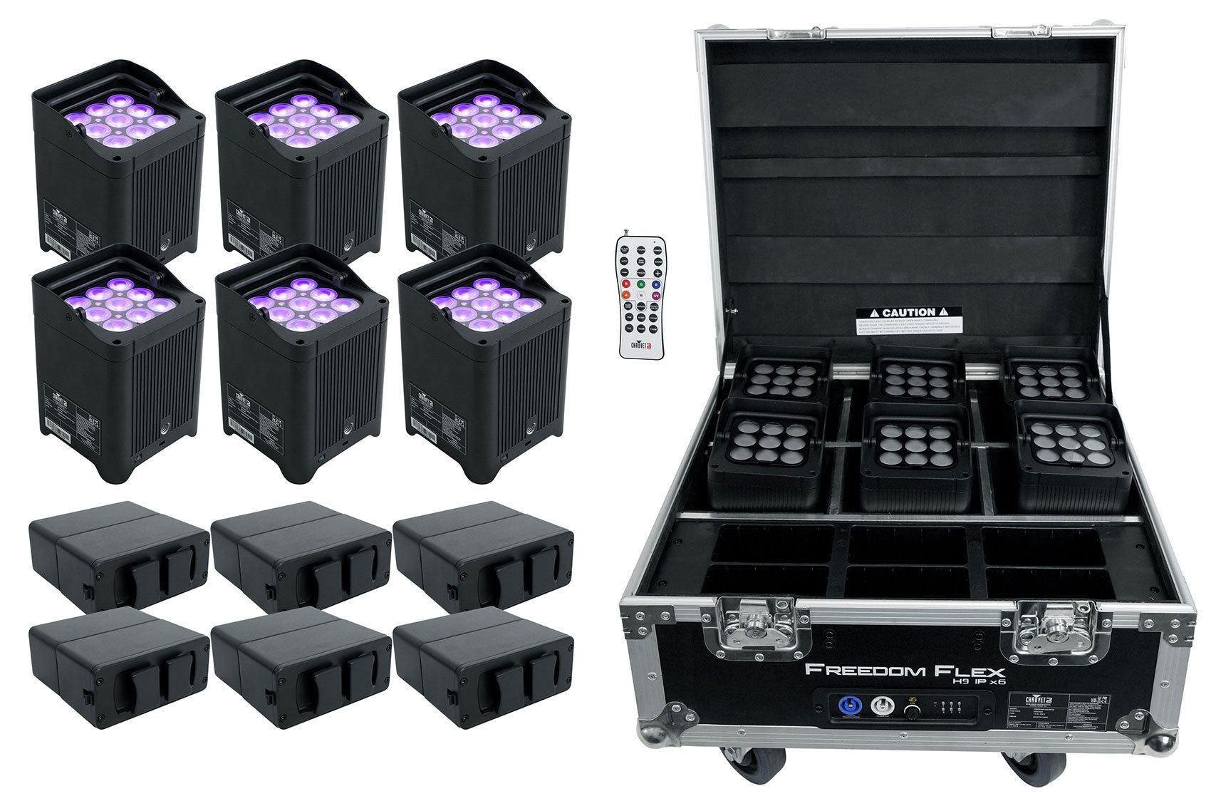 Chauvet DJ Freedom Flex H9 IP X6 Pack w/6) Lights+Charging Case+Batteries+Remote