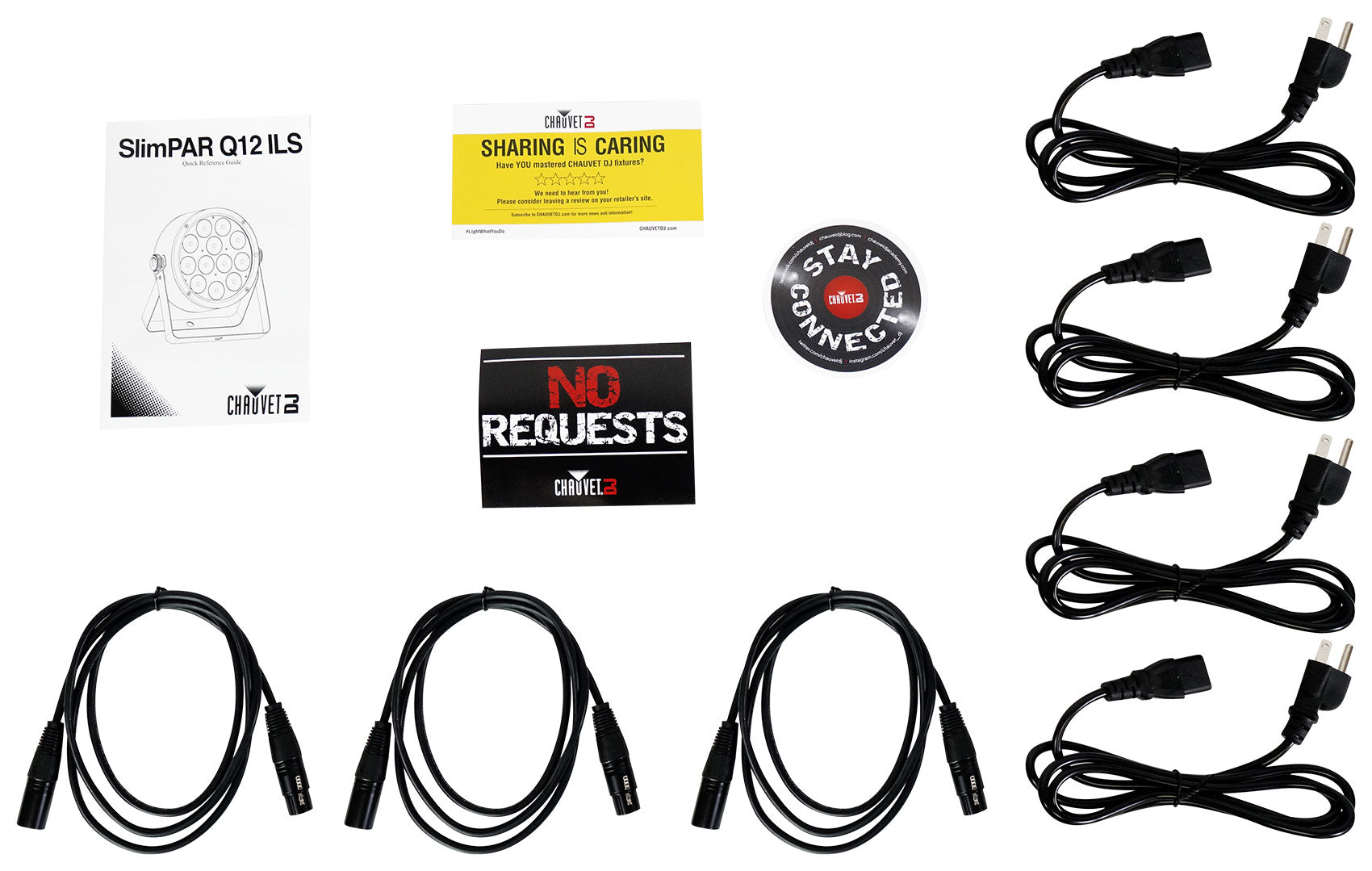 SlimPACK Q12 ILS bundles four SlimPAR Q12 ILS four power cords and three 5-foot DMX cables in an easily transportable VIP Gear Bag perfect for the mobile entertainer. SlimPAR Q12 ILS are compatible with the cutting-edge Integrated Lighting System (ILS) that makes creating coordinated light shows across different fixture types easy.