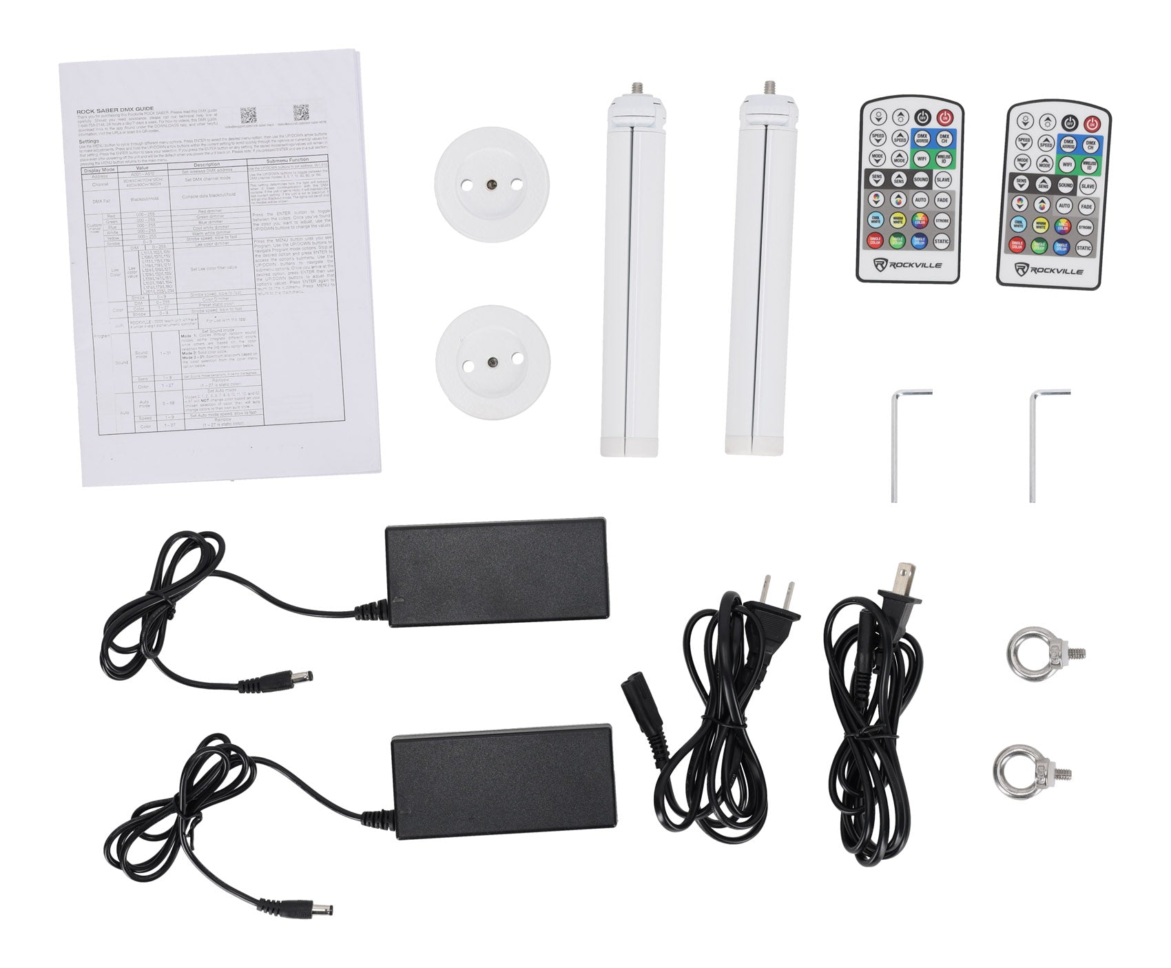 - Rockville 2x ROCK SABER WHITE (2) Pack of Wireless DJ Tube Lights + Padded Bag