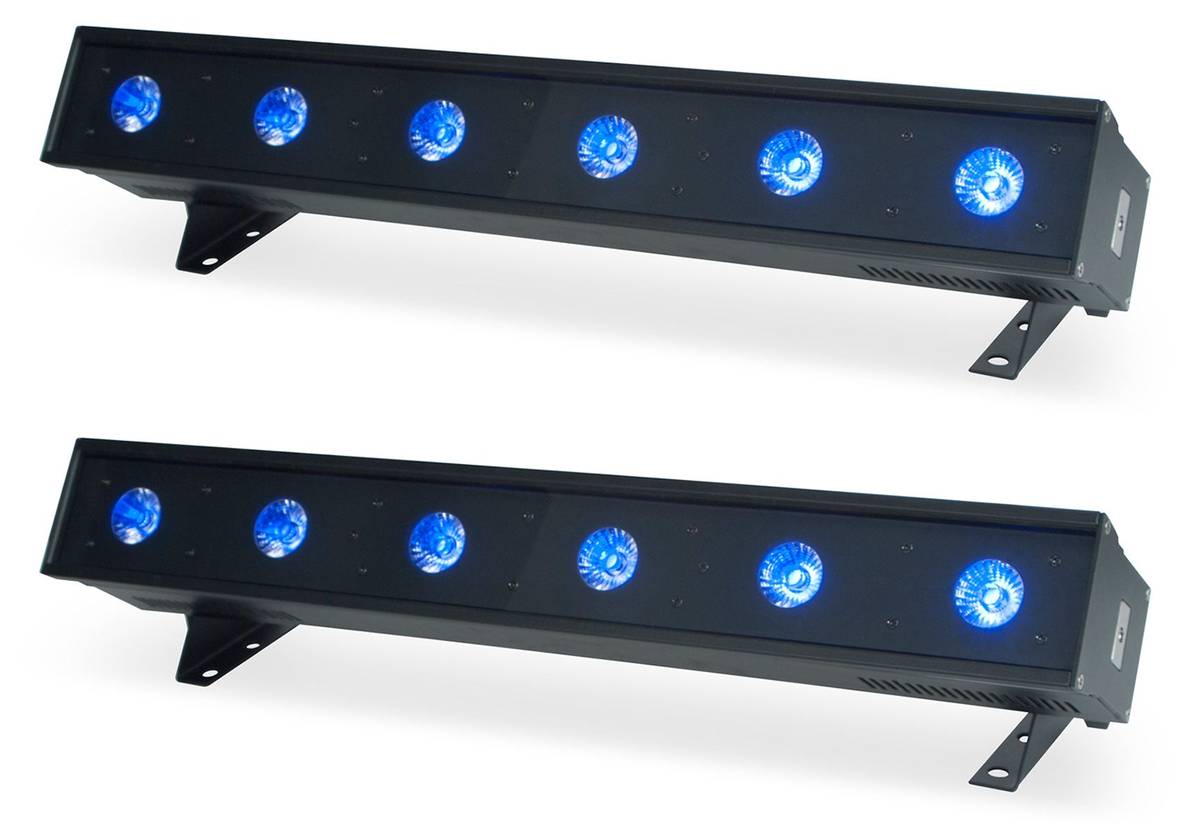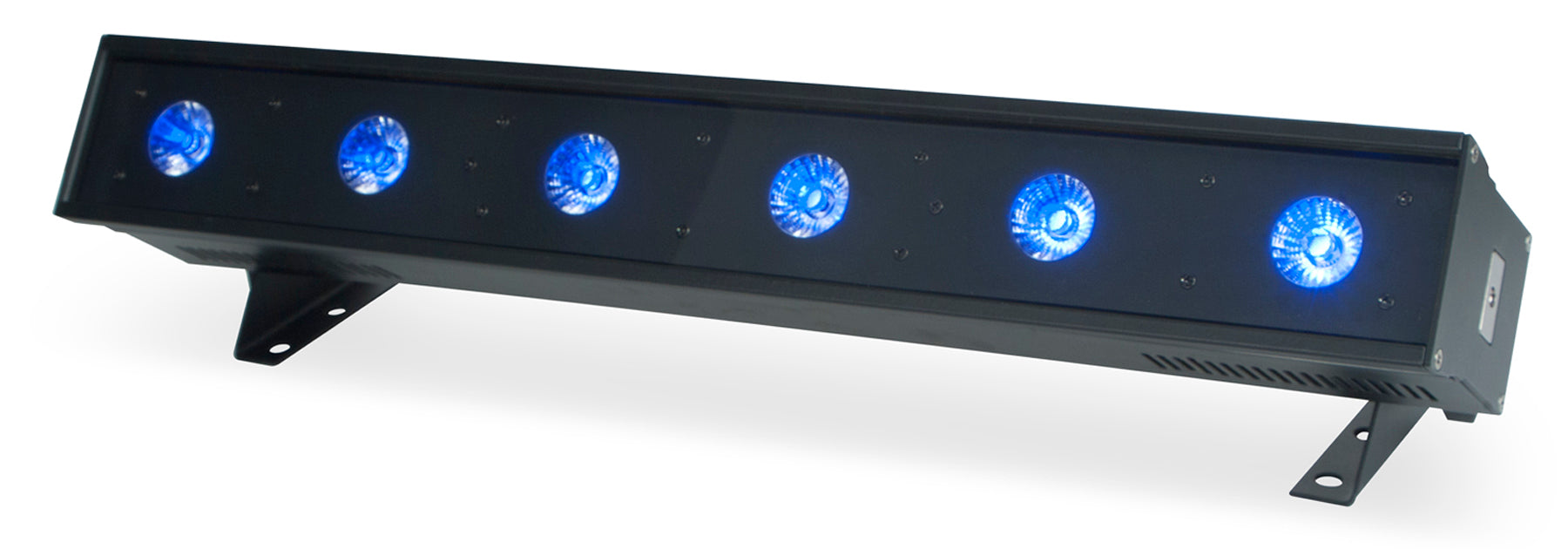 - Ultra bright, 23-inch (.5 meter) indoor Linear Bar with 6 x 10W Ultra bright HEX (RGBWA + UV: 6-IN-1) LEDs