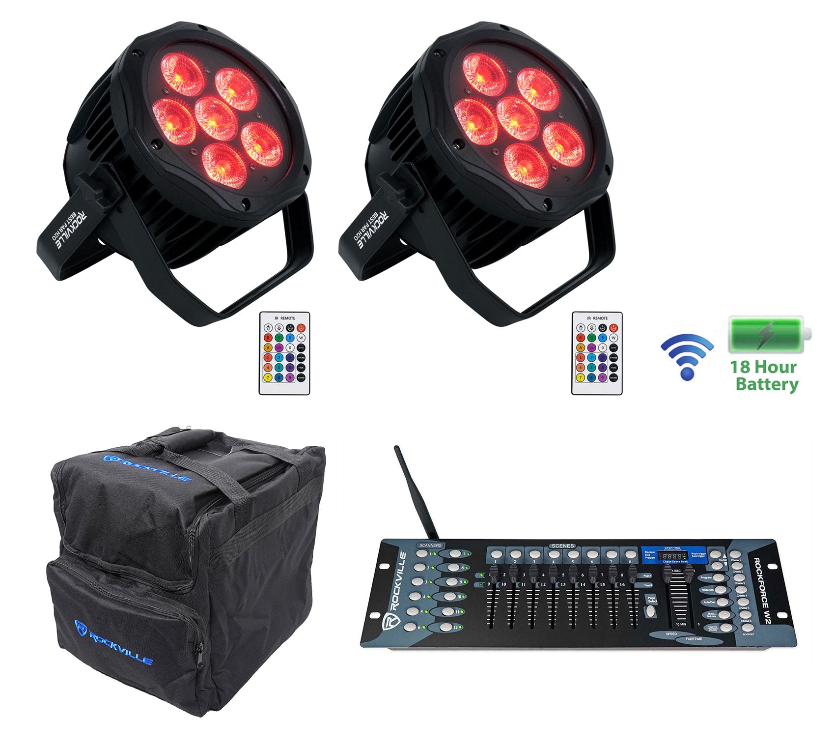 (2) Rockville BEST PAR H2O Water Resistant Lights+Bag+Wireless DMX Controller