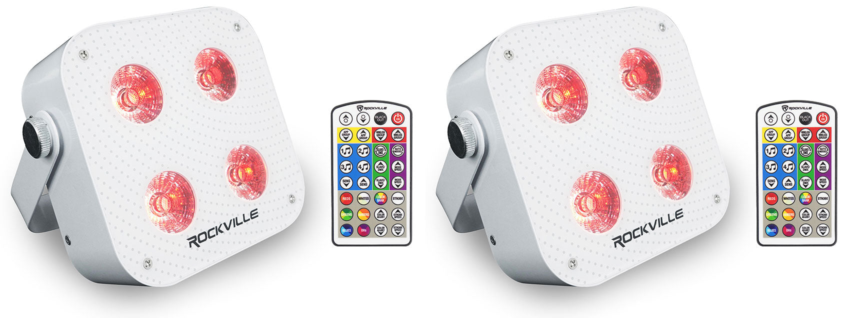 - (2) Rockville MINI IR4 White RGBWA+UV DJ/Party Par Wash Up Light+Wireless DMX+App