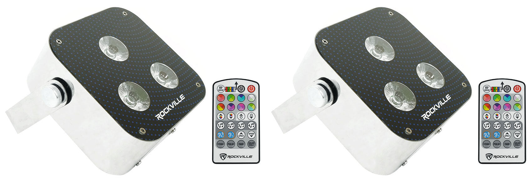 - (2) Rockville MINI RF3 RGBWA+UV DJ/Party LED Wash Light+4ch RF Long Range Par Remote
