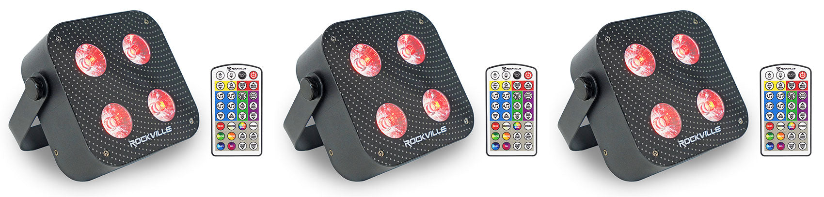 • (3) Rockville MINI IR4 Black RGBWA+UV DJ/Party Par Wash Up Light+Wireless DMX+App