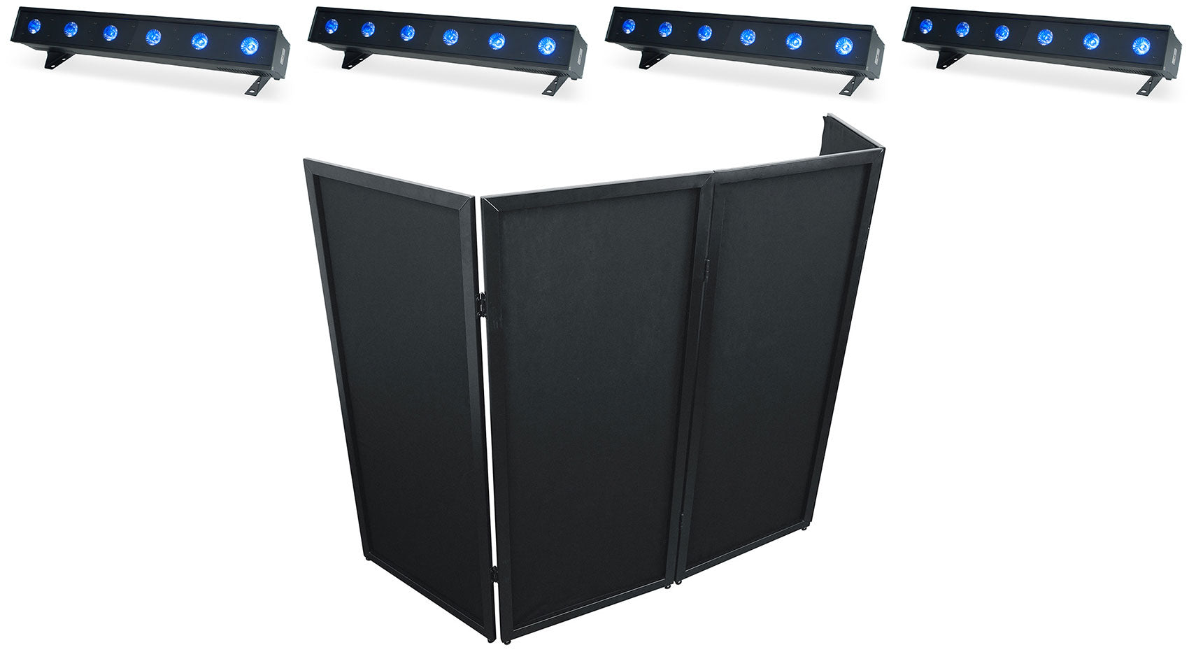 4) American DJ ADJ ULTRA HEX BAR 6 RF Wash/Strobe Effect Light Bars+Black Facade