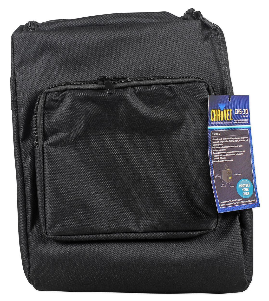 The CHS-30 VIP Gear Bag is perfect for carrying a small system of the popular SlimPAR Tri and/or Quad IRC fixtures along with control and cabling to go along with it. Each bag has padded internal compartments large enough to hold up to 4 fixtures, a small controller and cables to connect the system together. Protect your investment from bumps and scratches with these handsome CHAUVET branded gear bags.