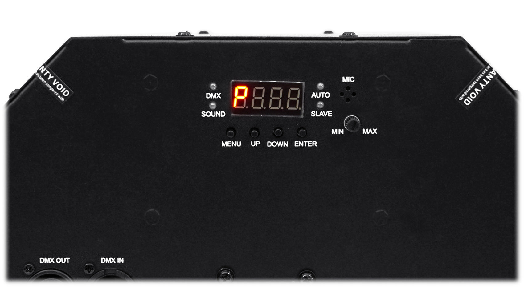 - Built in digital display for easy access to set DMX channels, change operation mode, change fan speed, and change thickness of haze