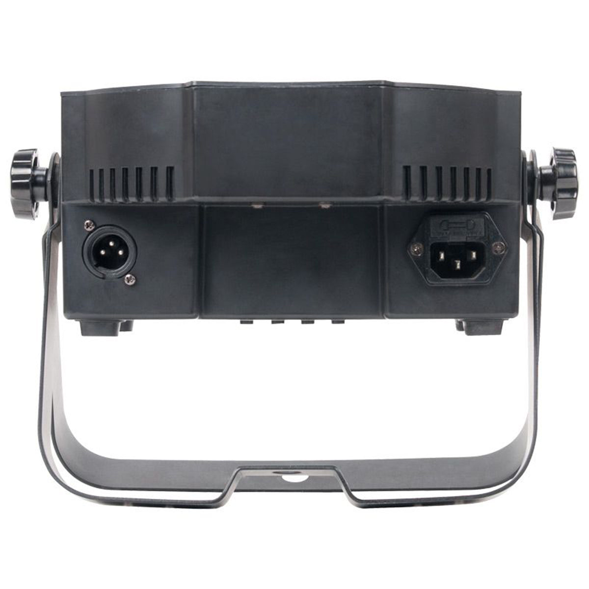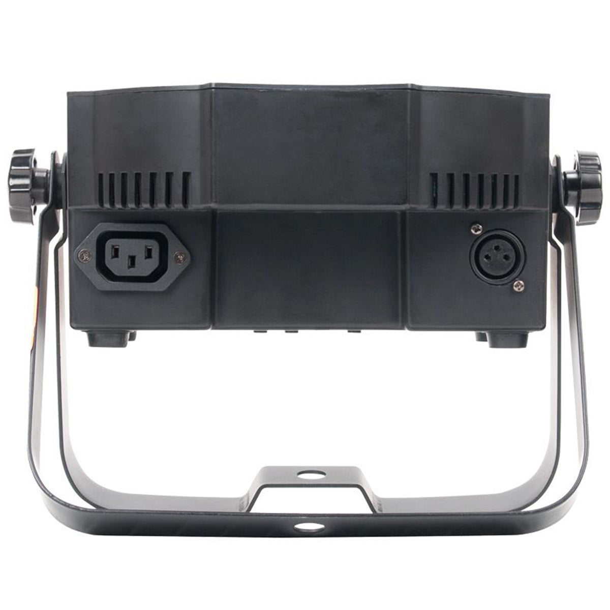 This Par is intelligently designed so that it may sit directly on the ground or inside truss without the hanging bracket because the power & DMX Ins and Outs sit on the side of the fixture, not on the rear. Its feet and scissor yoke allow for maximum lighting versatility to be used as a floor wash or hung from truss or pipe.