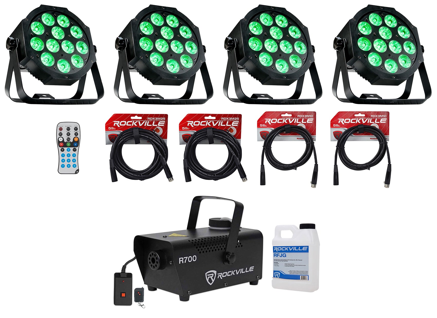 4) Eliminator MEGA 64 PROFILE EP DMX RGB+UV Wash Lights+Remote+Fogger+Cables