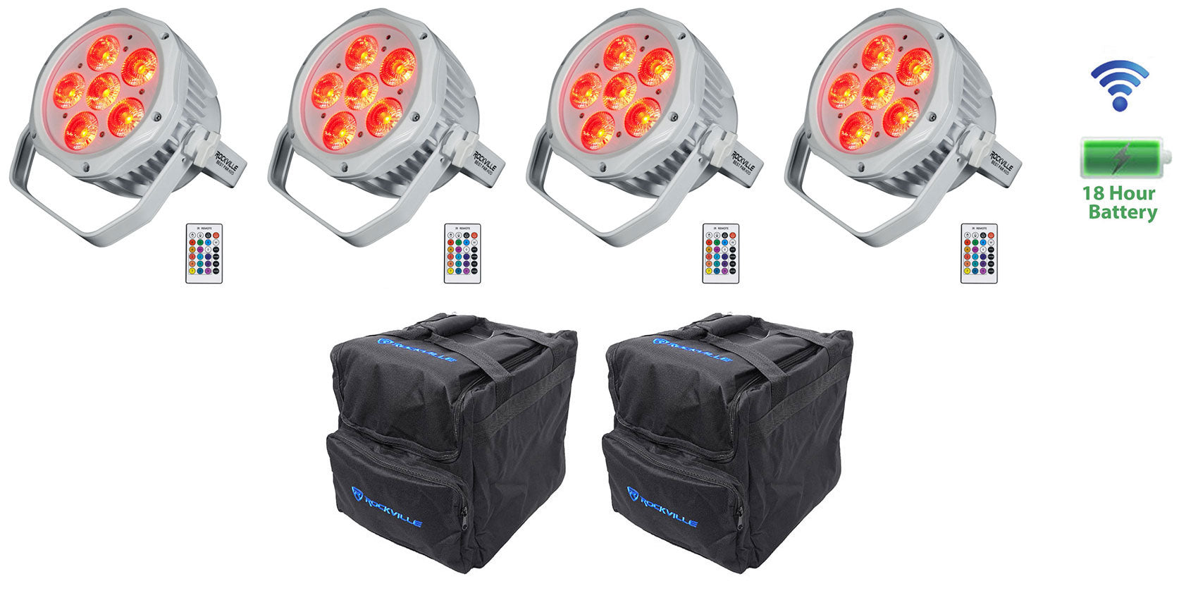 • (4) Rockville BEST PAR H2O White Water Resistant Indoor/Outdoor Battery DJ Par Light