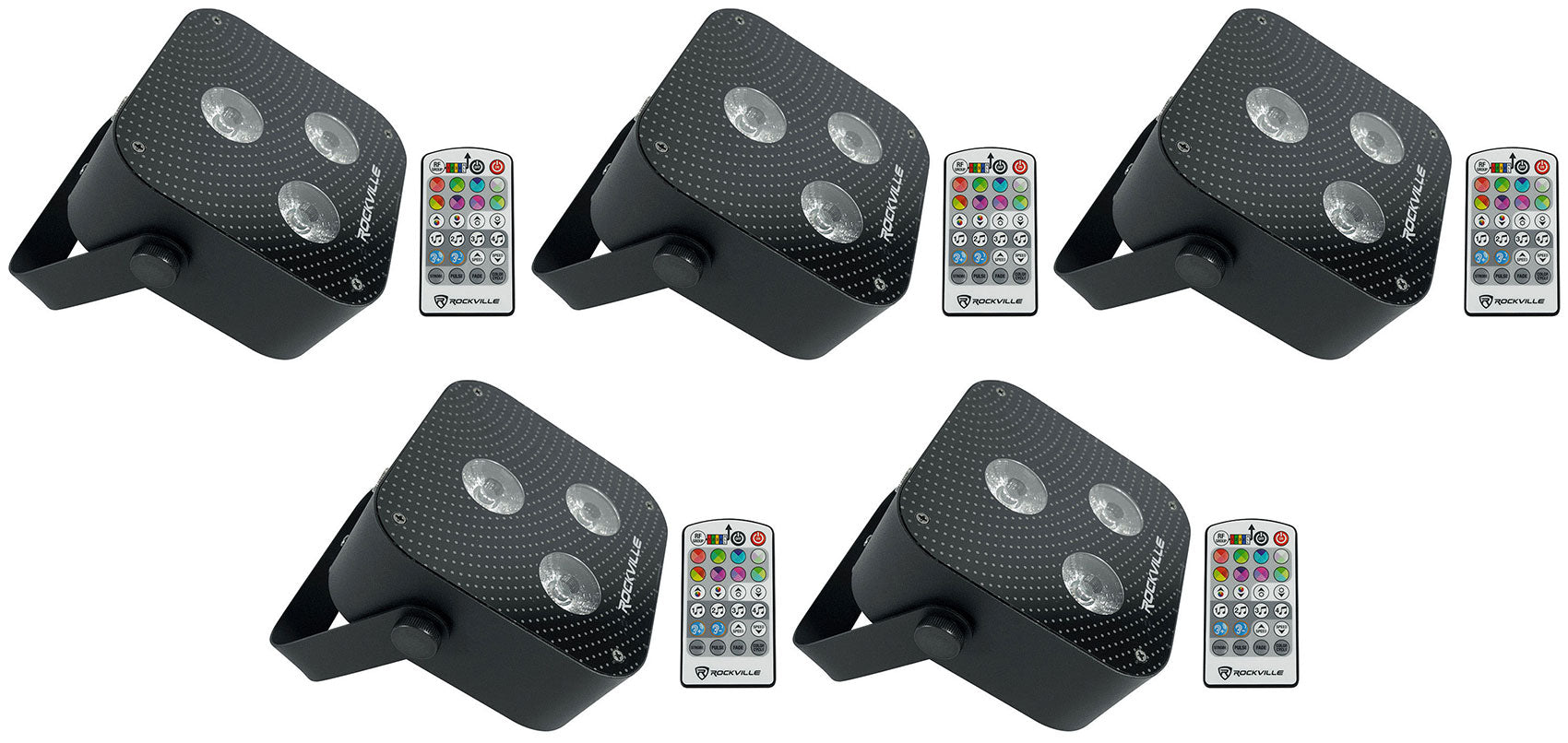 - (5) Rockville MINI RF3 Black RGBWA+UV DJ/Party LED Wash Light+4-Ch. RF Par Remote