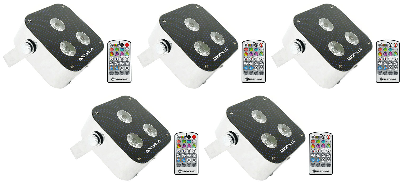 - (5) Rockville MINI RF3 RGBWA+UV DJ/Party LED Wash Light+4ch RF Long Range Par Remote
