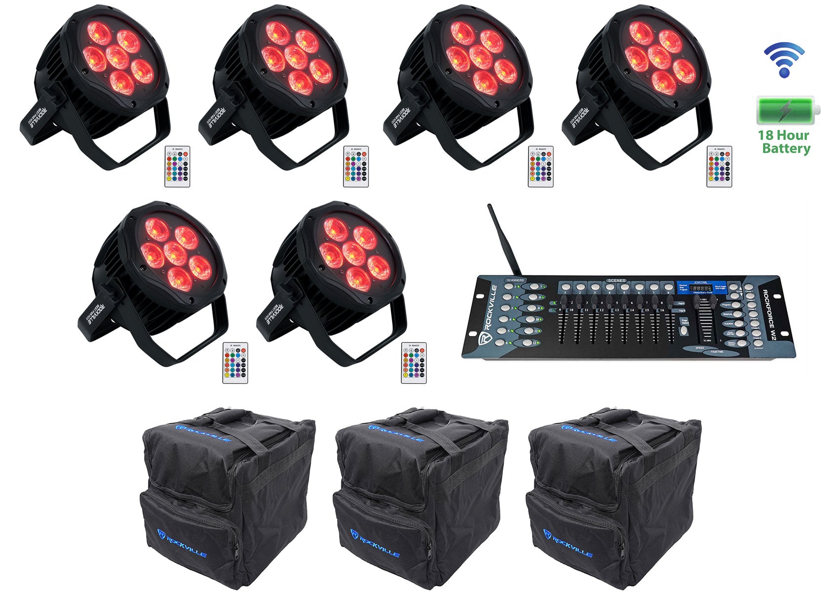 (6) Rockville BEST PAR H2O Water Resistant Lights+Bags+Wireless DMX Controller