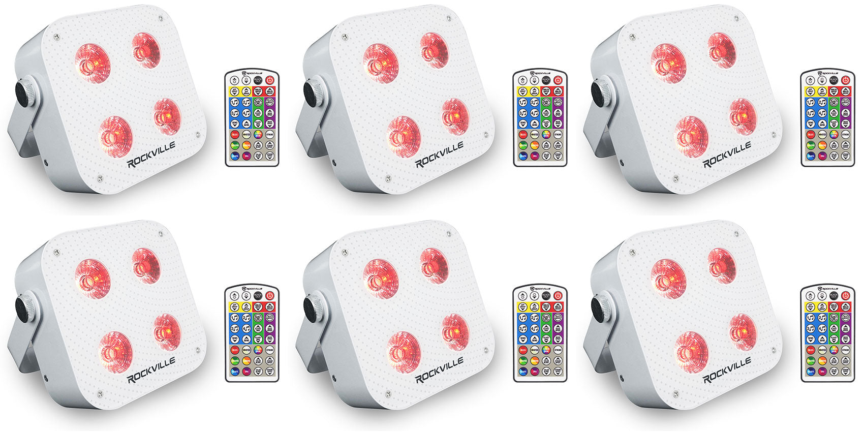 - (6) Rockville MINI IR4 White RGBWA+UV DJ/Party Par Wash Up Light+Wireless DMX+App