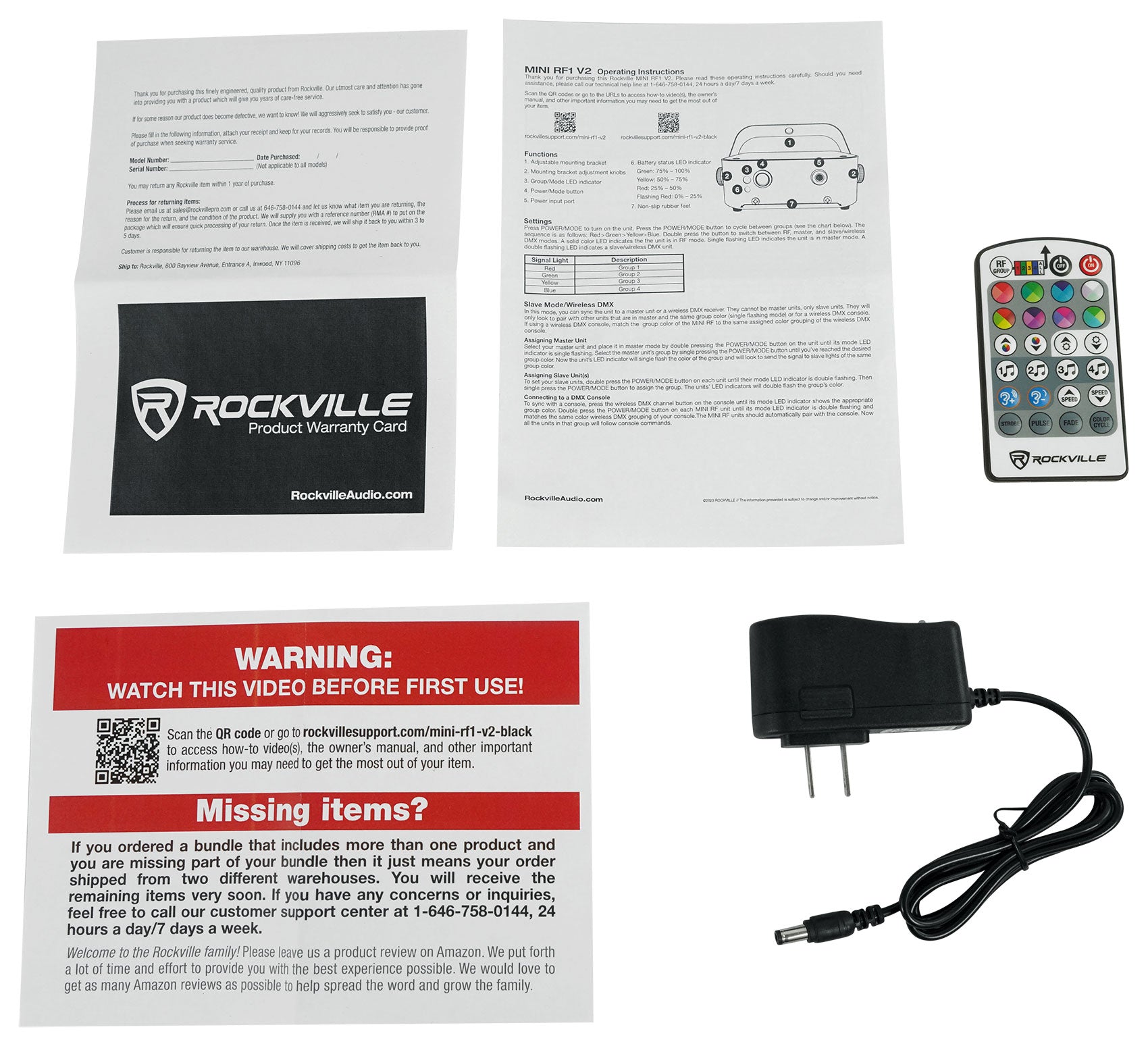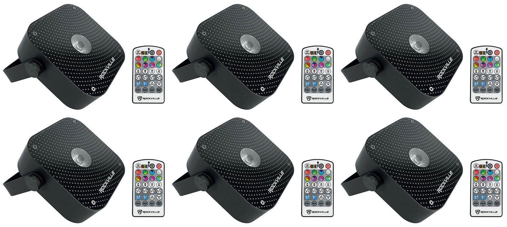 • (6) Rockville MINI RF1 V2 Black RGBWA+UV DJ/Party LED Wash Light+4-Channel RF Remote