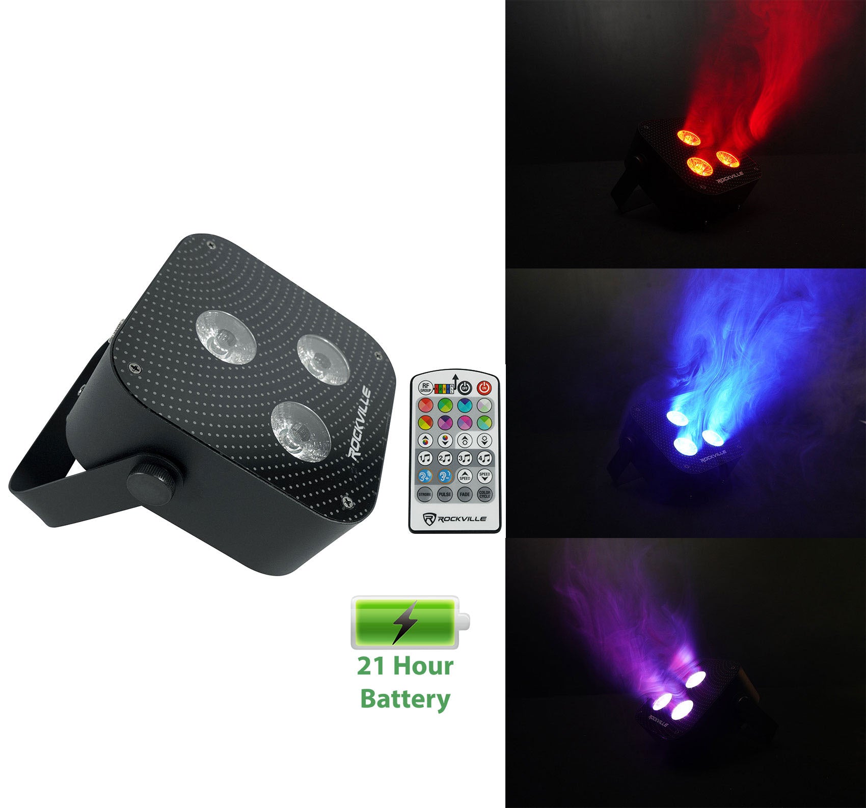 - Rockville Mini RF3 RGBWA+UV Battery Powered Mini Wash Light with 4 Channel RF Remote