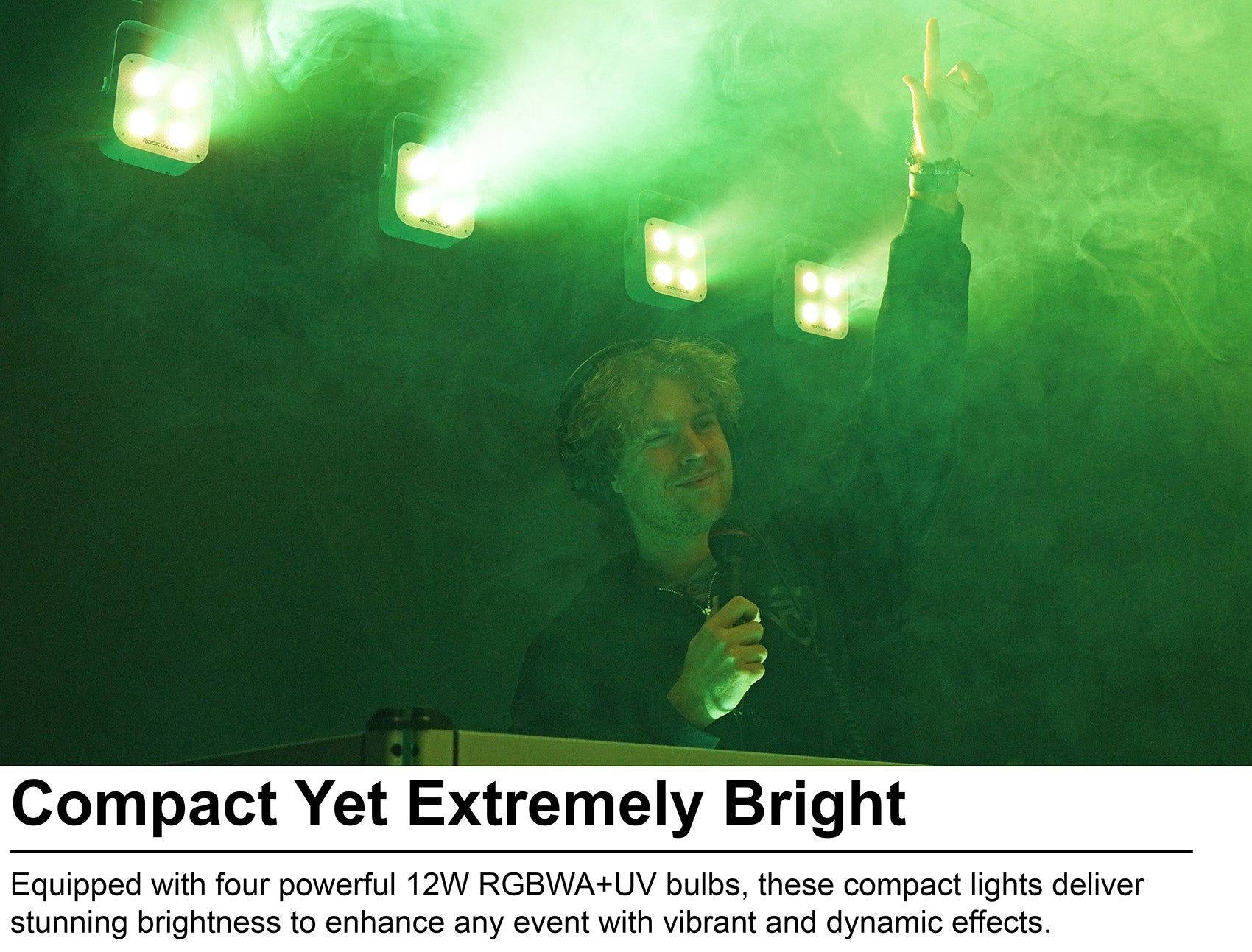 - (6) Rockville MINI RF4 V2 White Bright DJ/Party LED Par Wash Up Light+RF Remote+APP