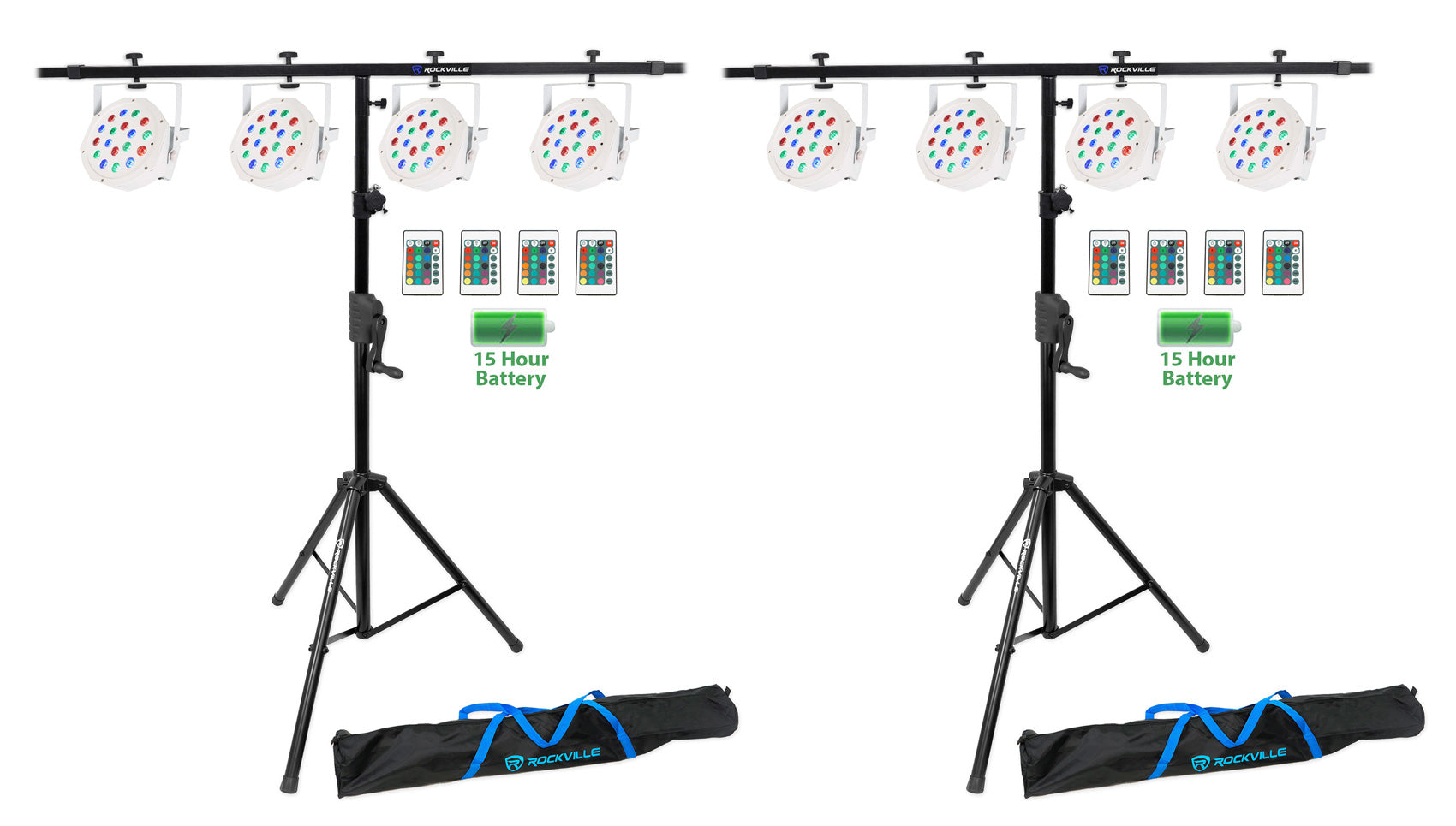 (8) Rockville BATTERY PAR 50 White Rechargeable DMX DJ Wash Lights+Crank Stands