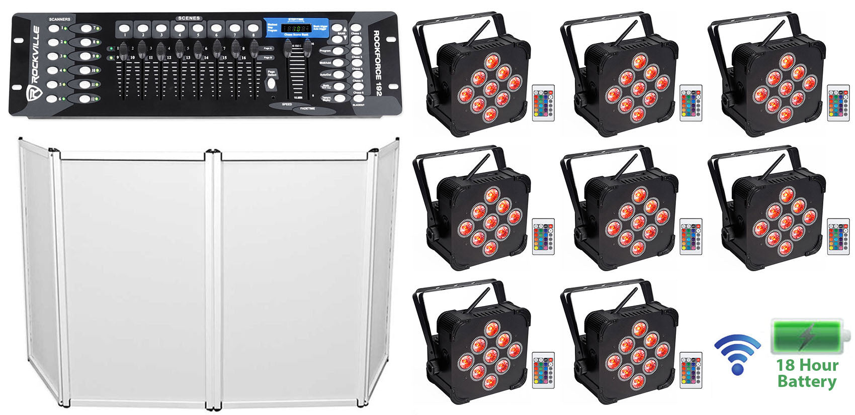 8) Rockville BEST PAR 60 Rechargable Wireless Par Can Wash Lights+Facade+Control