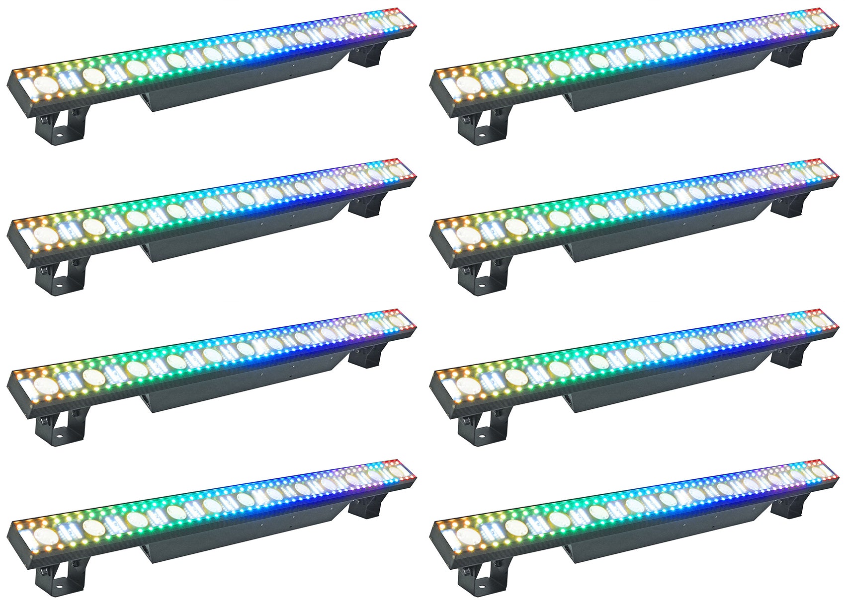 - (8) Rockville Pixel Hybrid Bar Battery Power Light Strip Linear Wash/Strobe/Blinder