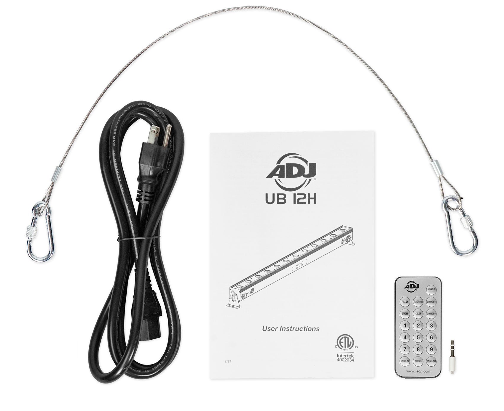 UB 12H features built-in Color Macros (built-in colors), 0-100% dimming and variable speed strobe. Plus, it offers flexible programming from its on-board 4-Button LED DMX-512 menu, or from the ADJ UC IR wireless remote included inside the box.