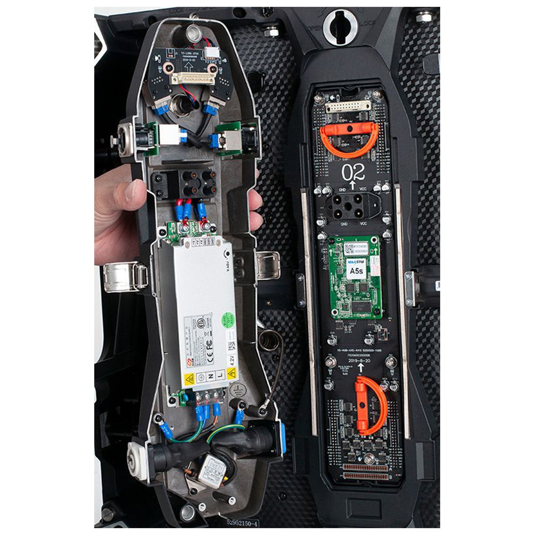 The VS5 is a high-resolution video panel with a pixel pitch of 5.95mm with a configuration of a 3-in-1 RGB SMD2121 LED, and a brightness of 1000 NITS. There are 4 LED modules per panel. This allows for easy serviceability. The VS5 connections include Power Lock In/Out and Data Lock In/Out. Each panel features the Novastar A5s receiving card built-in. Up to 8 VS5 video panels fit inside the VSFC8 flight case. Hang up to 20 VS Series Video Panels vertically with the VSRB1 rigging bar.
