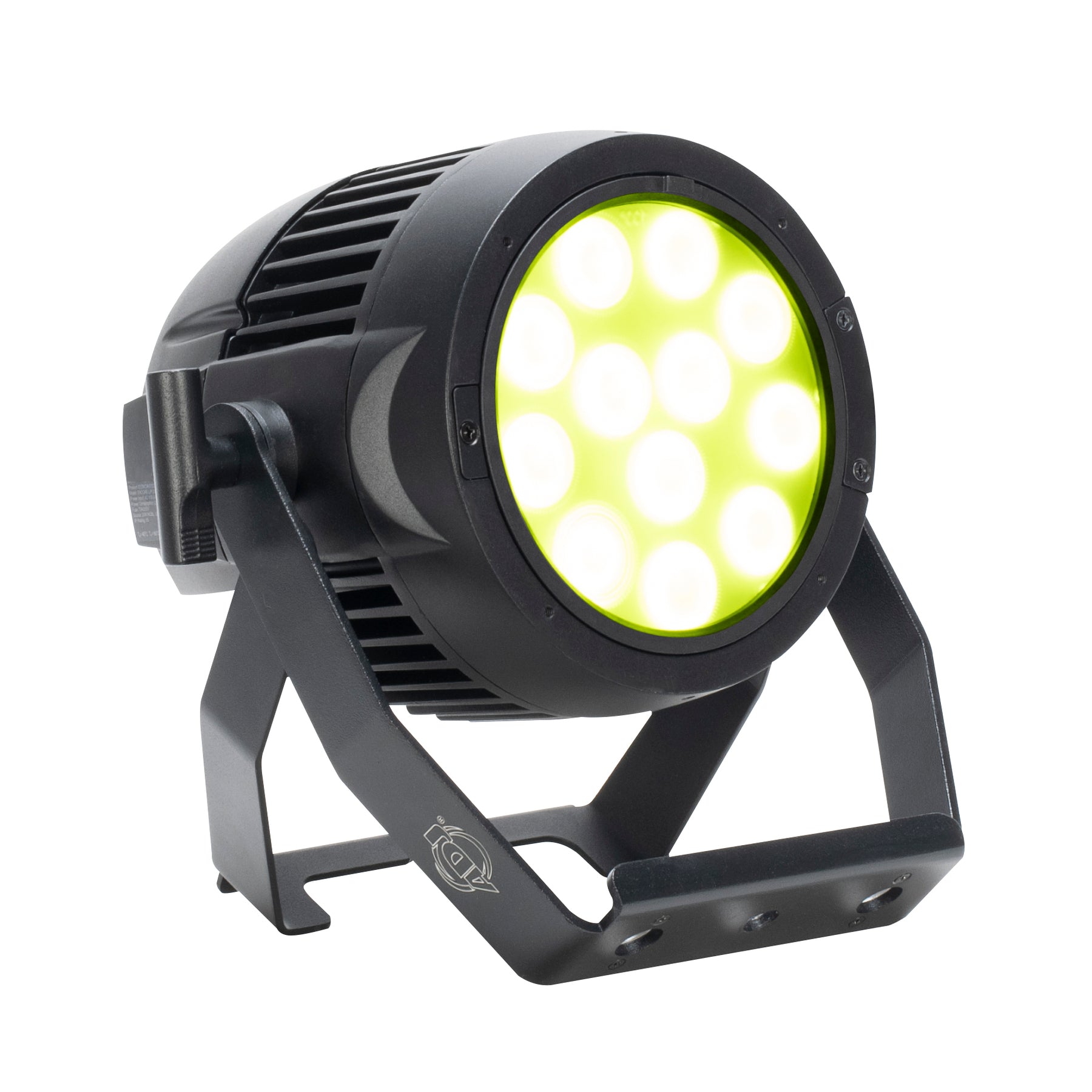 The ADJ Encore LP12IP is a versatile, heavy duty Par with twelve (12) 20W Quad LEDs (4-IN-1: Red, Green, Blue & Lime), a 10° beam angle, and all metal construction. It is IP65 outdoor rated to protect against, rain, snow and dust for temporary outdoor events. It offers flicker free operation for TV and film and linear white color temperature control from 2700K - 7000K. A removable 25-degree frost filter is included.