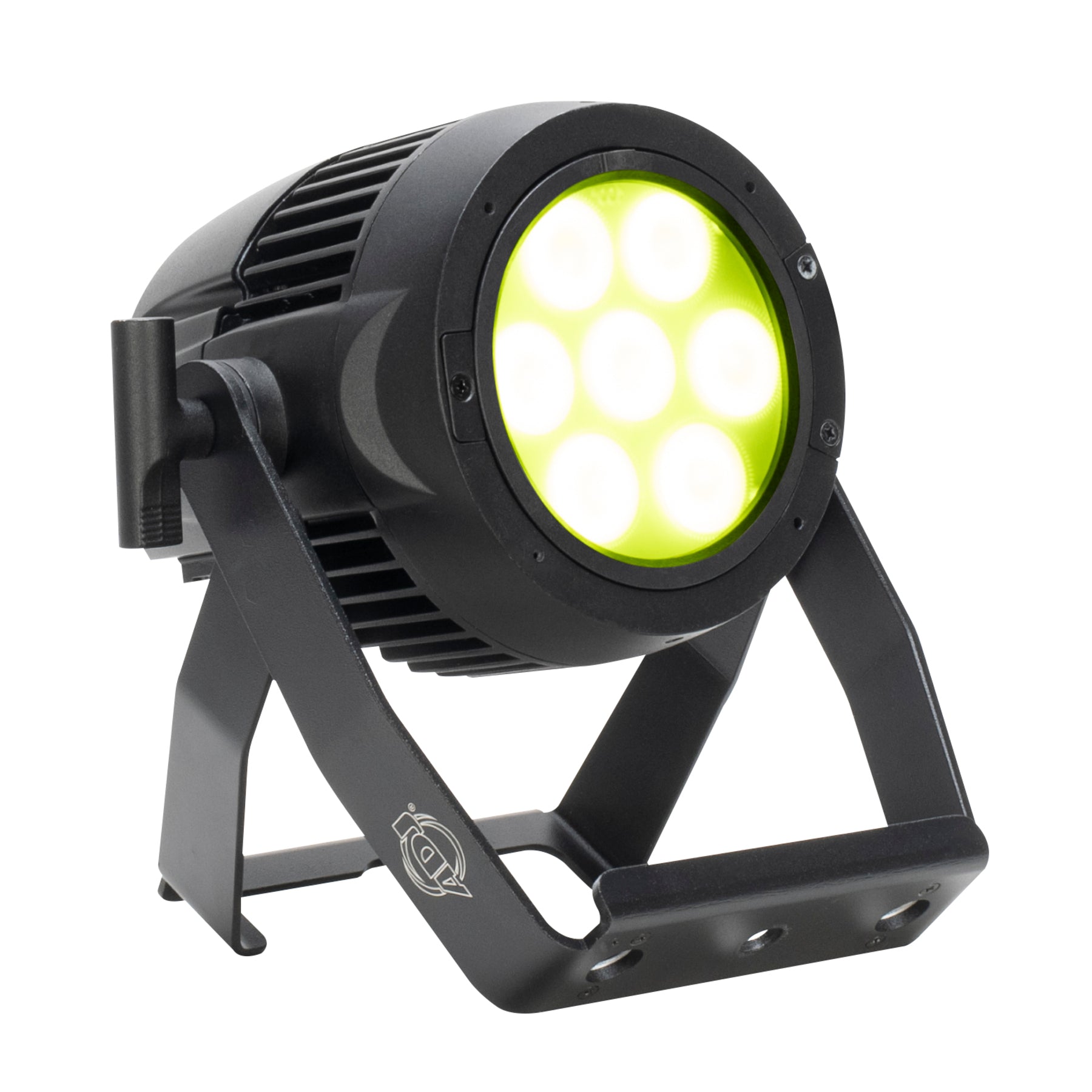 The ADJ Encore LP7IP is a versatile IP65 outdoor rated Par with 7 x 20-Watt (4-IN-1: Red, Green, Blue & Lime) Quad LEDs. With a 10° beam angle, users may produce wide washes with smooth color mixing from 64 built-in color macros utilizing red, green, blue and lime LEDs. Not only is this LED Par great for lighting indoor stages and venues, but with its IP65 rating, it’s a great solution for temporary outdoor lighting of stages or events. The IP65 rating helps protect the fixture from rain, snow and dust.