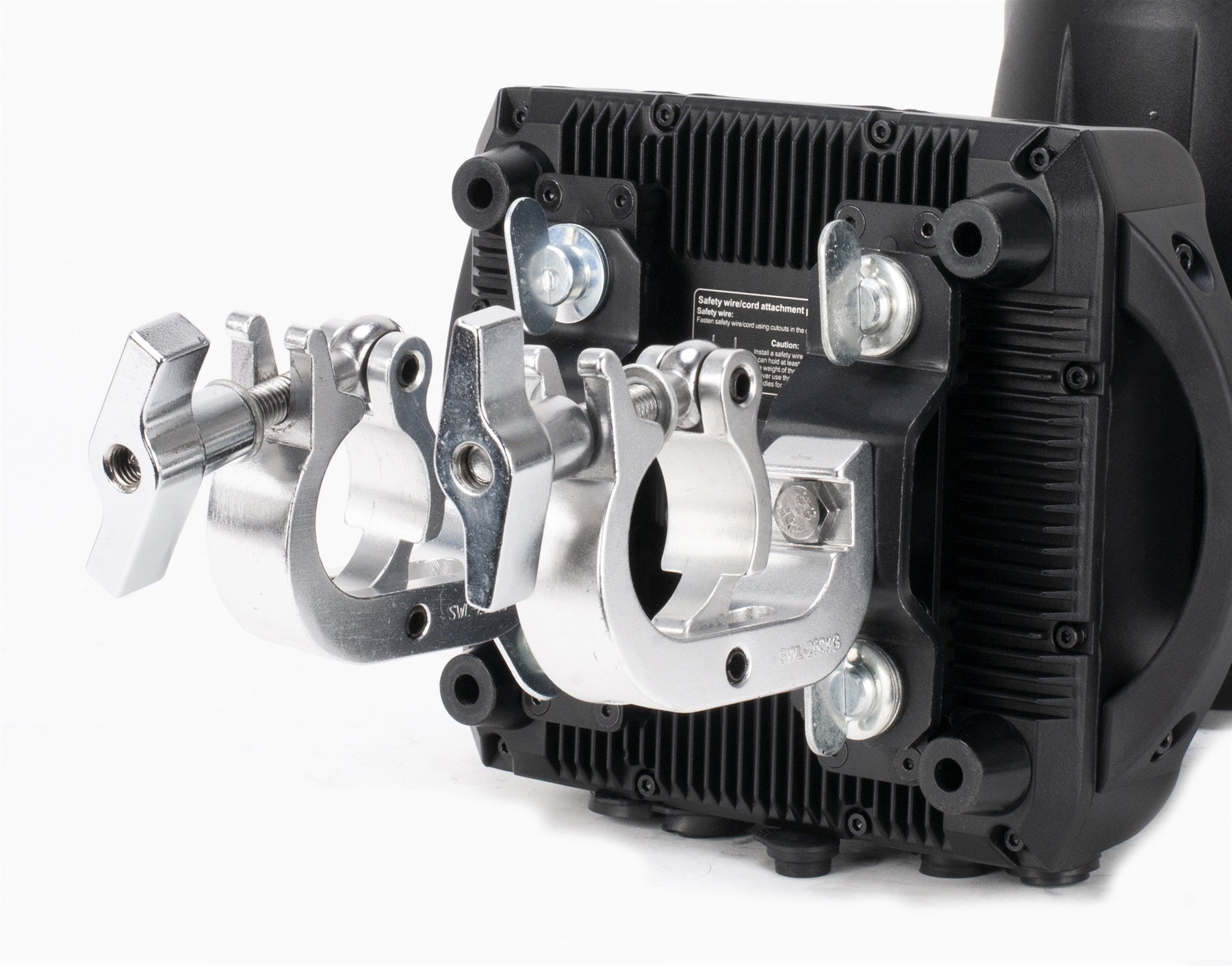 Its fitted with 5-pin DMX In/Out and locking powerl In/Out connectors to daisy chain power. It offers a USB port for software updates. All connections are IP65 rated with rubber protective covers.