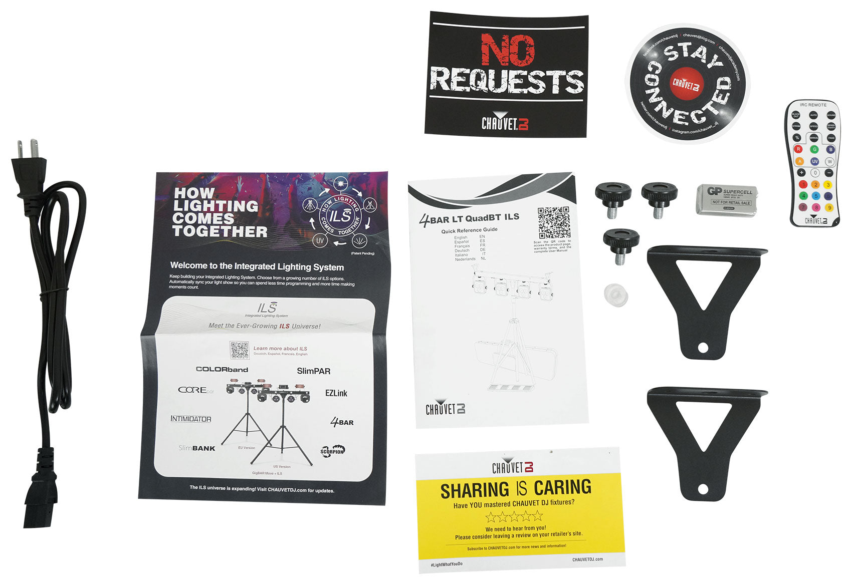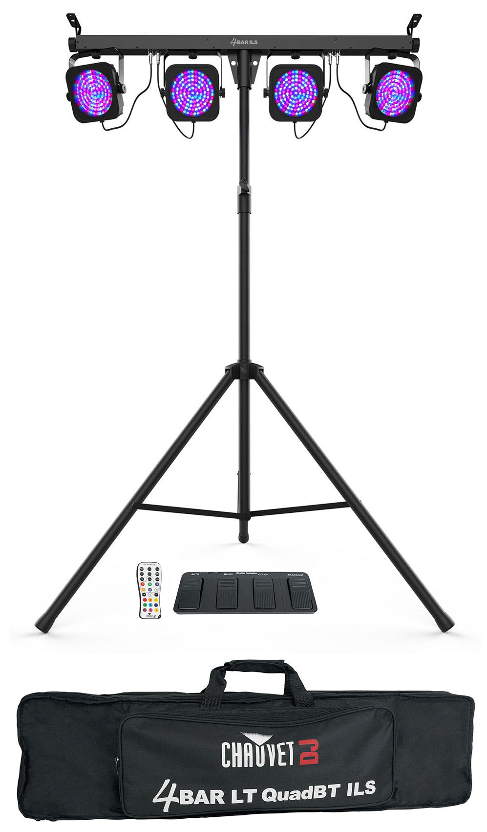 Chauvet DJ 4BAR LT QuadBT ILS Bluetooth Wash Lighting Kit+Tripod+Bags+Footswitch