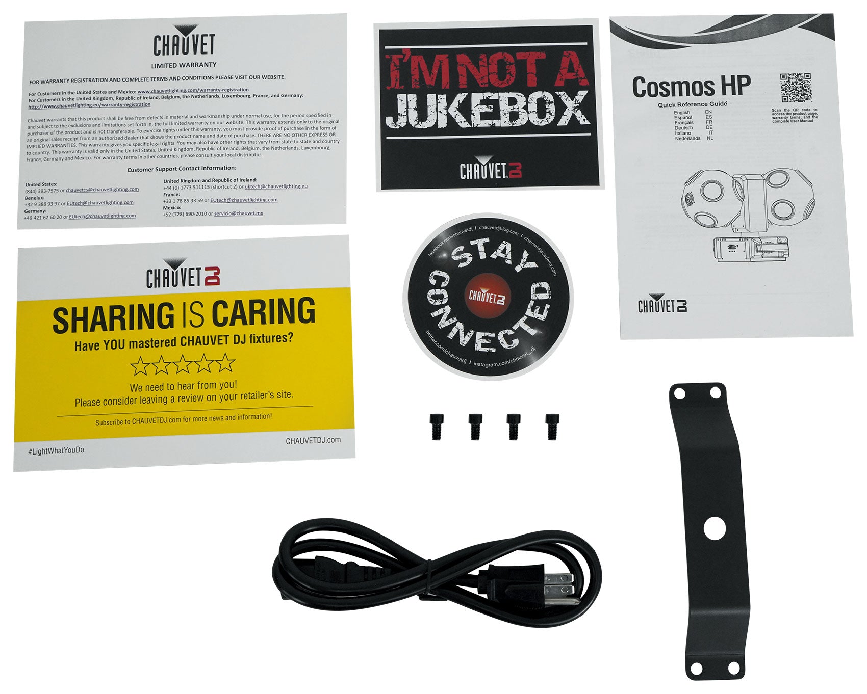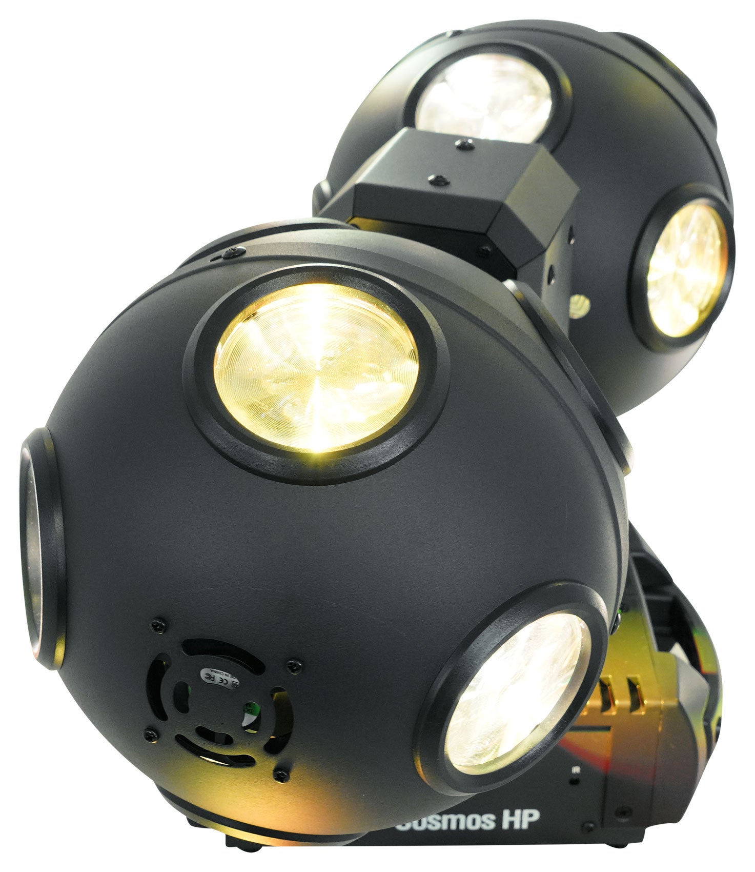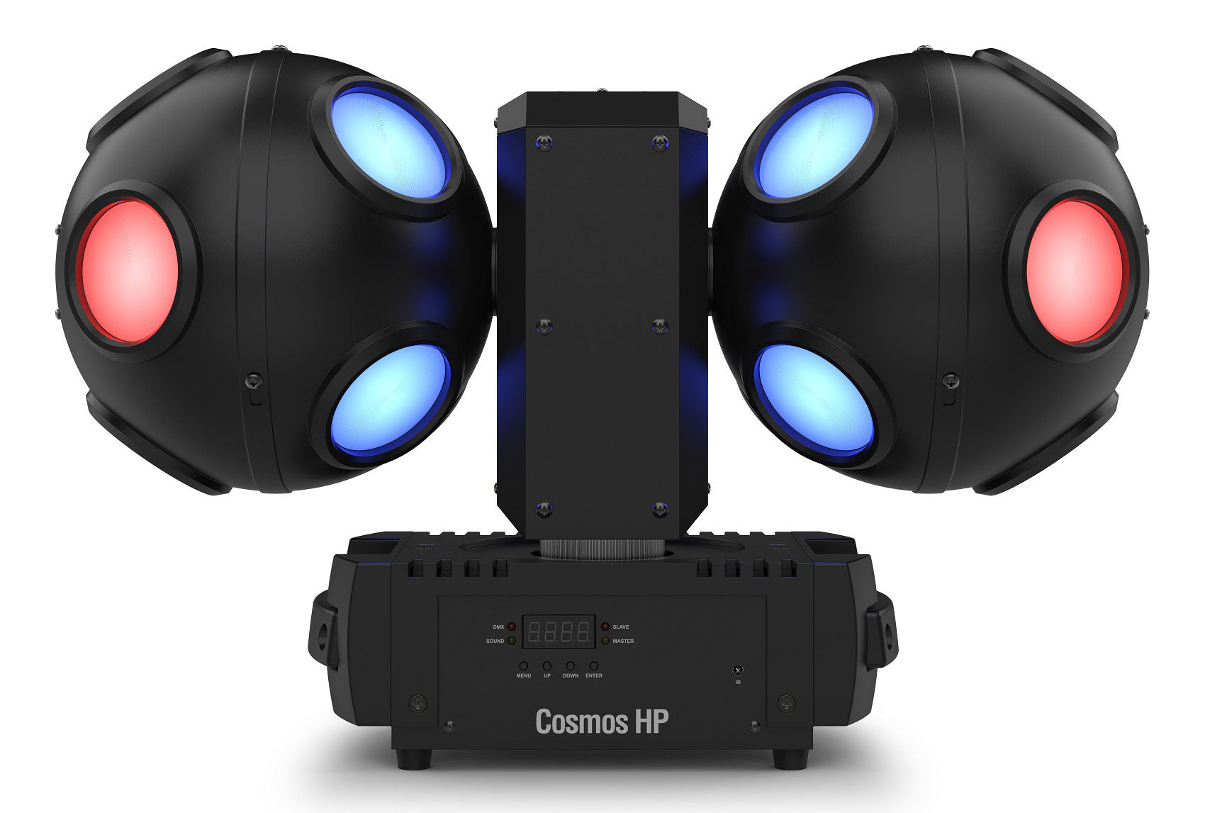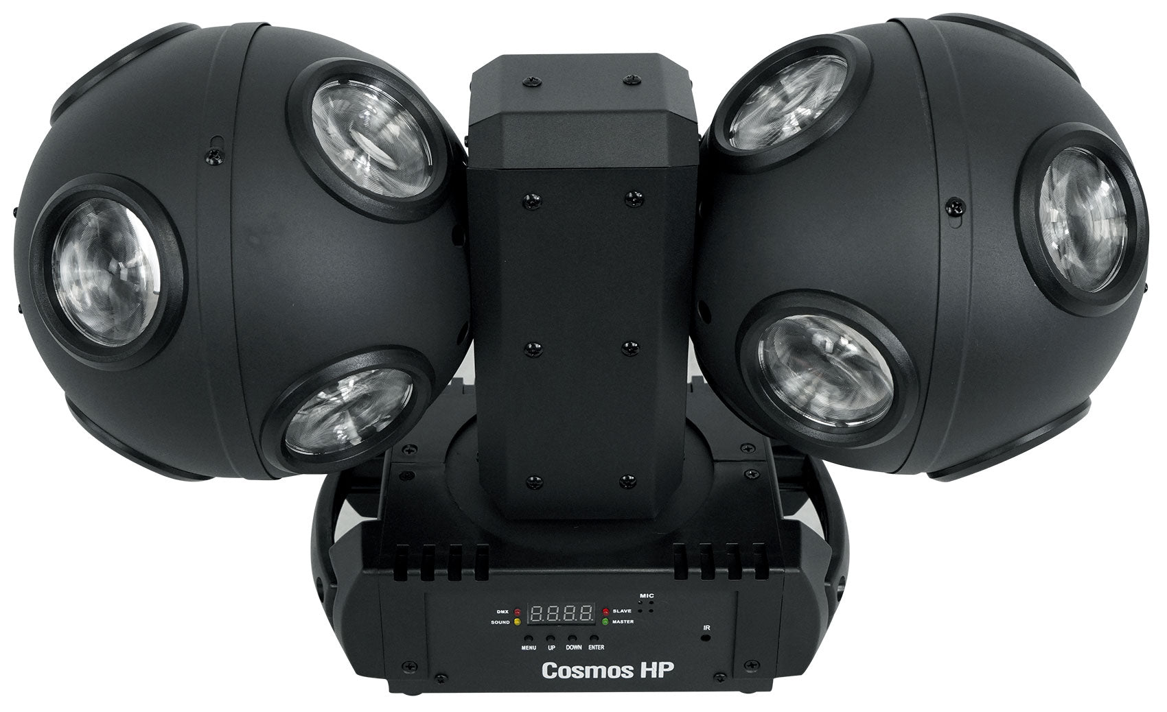Blast into a whole new universe of dance floor energy with Cosmos HP, a high-powered LED effect light that generates breathtaking razor-sharp beams of RGBW light for astonishing aerial effects that cover the entire room and look amazing with or without haze. Independently controlled motors spin two LED filled balls continuously in different directions creating stunning swirling effects. Generate complex looks easily with built-in, eye-catching auto programs with zone control and use an optional IRC-6 wireless remote for convenient, wireless control.