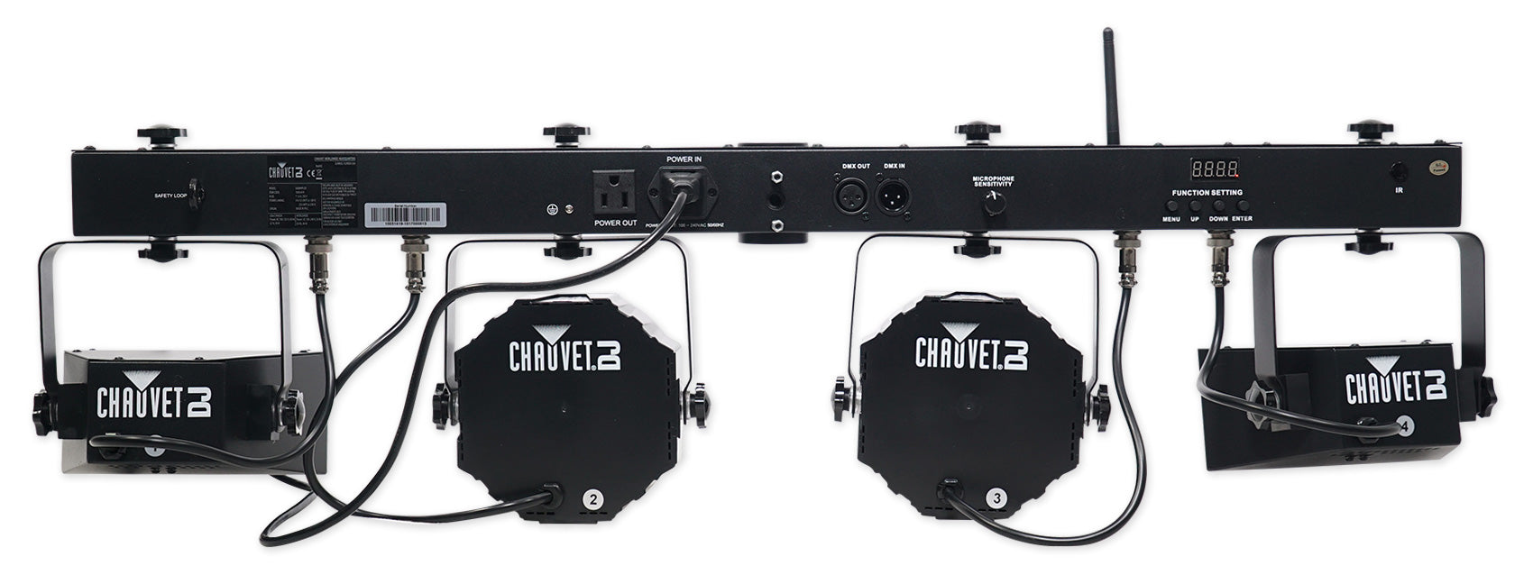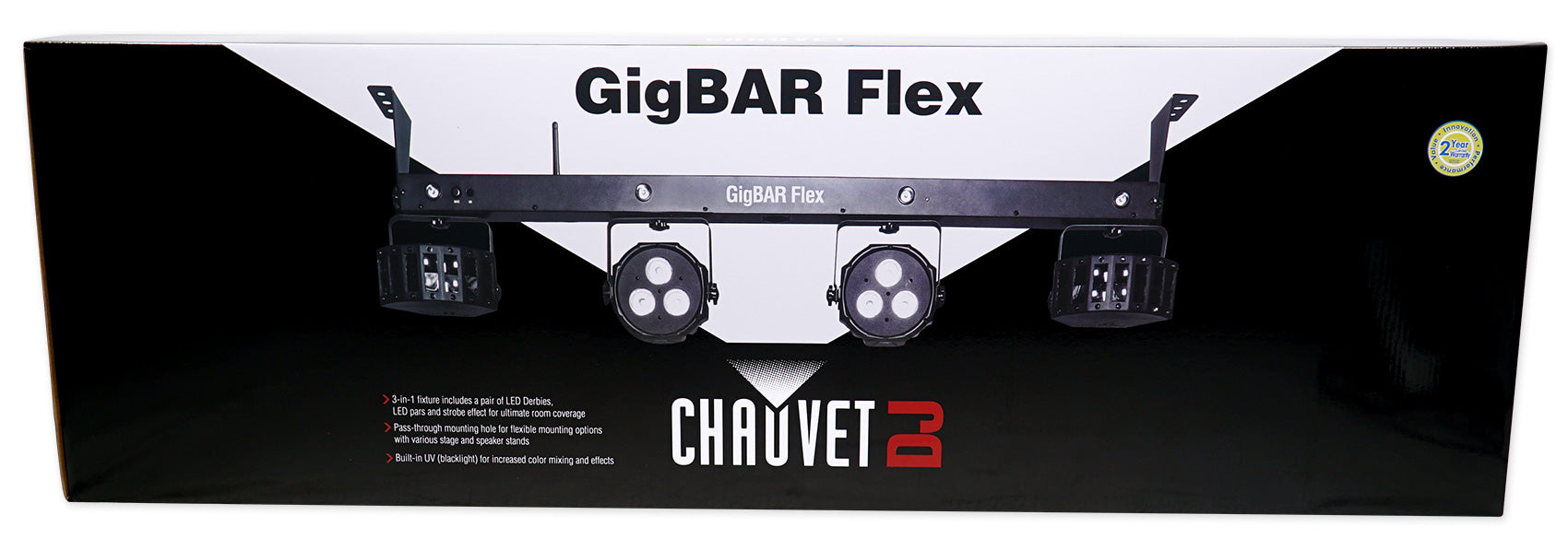 - Chauvet DJ GigBARFlex Lighting System with (2) Derby + (2) Par Can Lights with Mounting Bar with Built-In Strobe Lights and Footswitch
