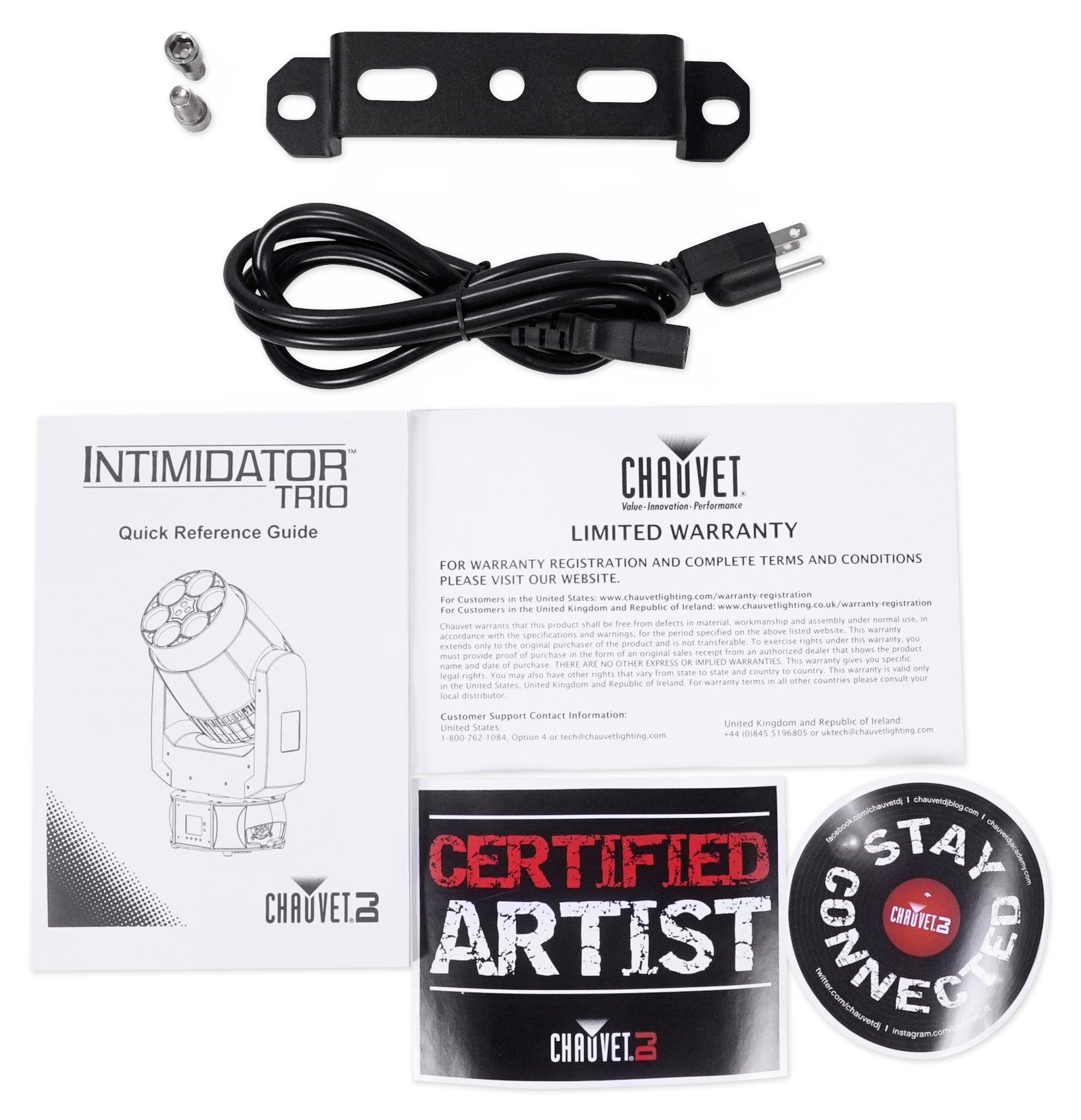 The Intimidator Trio is an innovative, LED-powered moving head with beam, wash and effect features. It allows you to seamlessly change from a narrow beam to a wide wash with the motorized zoom. Its continuously rotating honeycomb delivers the excitement of an effect light and you can generate complex looks easily with built-in, eye-catching auto programs with zone control.